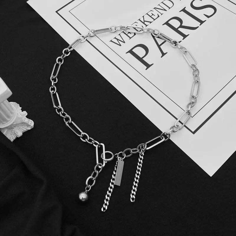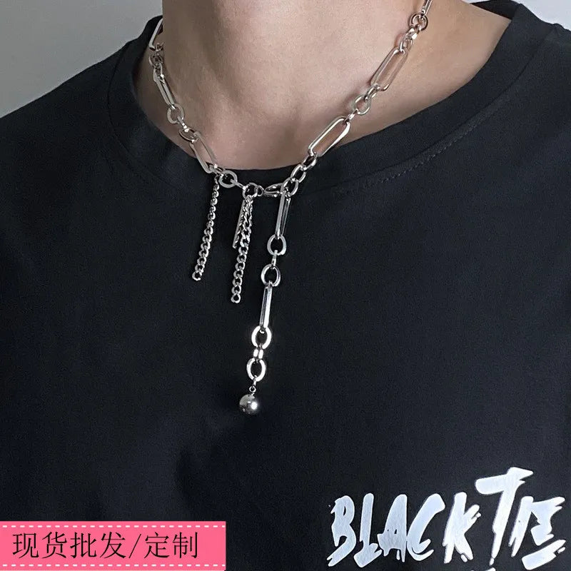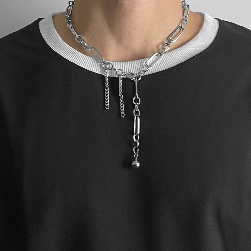 Trendy Long Pendant Tassel Necklace Metal Chain Personalized Charm Polished Titanium Steel Unisex Geometric Pattern Party Accessory