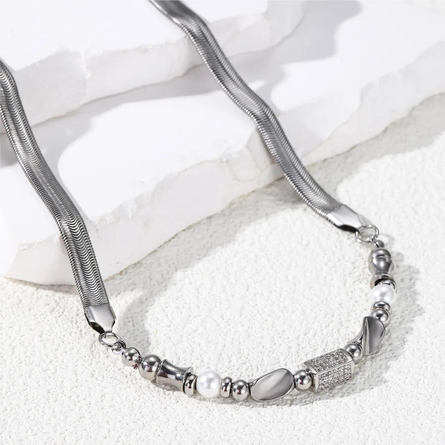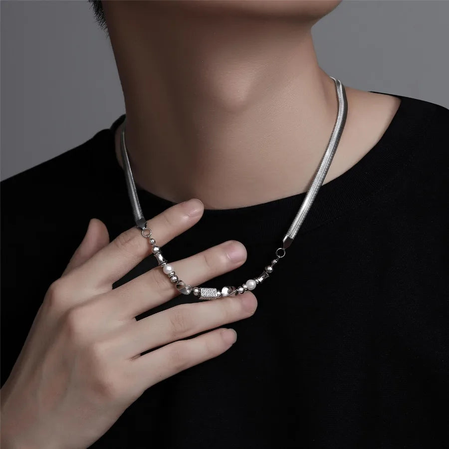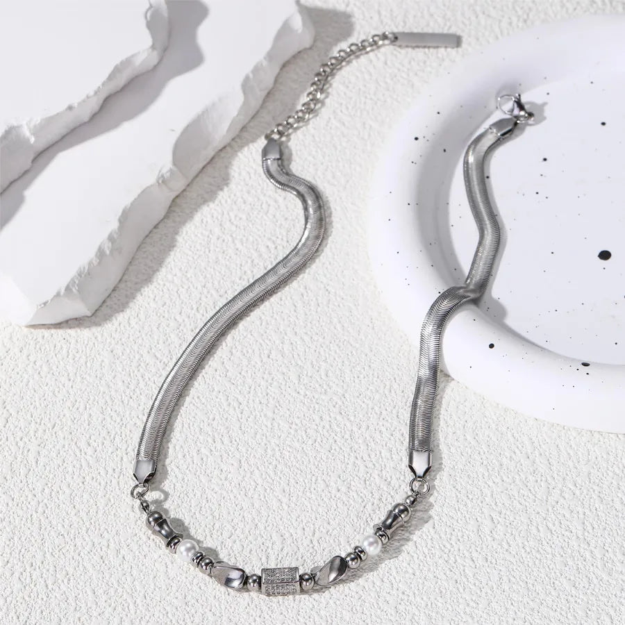 Trendy Titanium Steel Snake Bone Necklace For Men And Women Luxury Design Non-fading Collarbone Chain Geometric Pattern