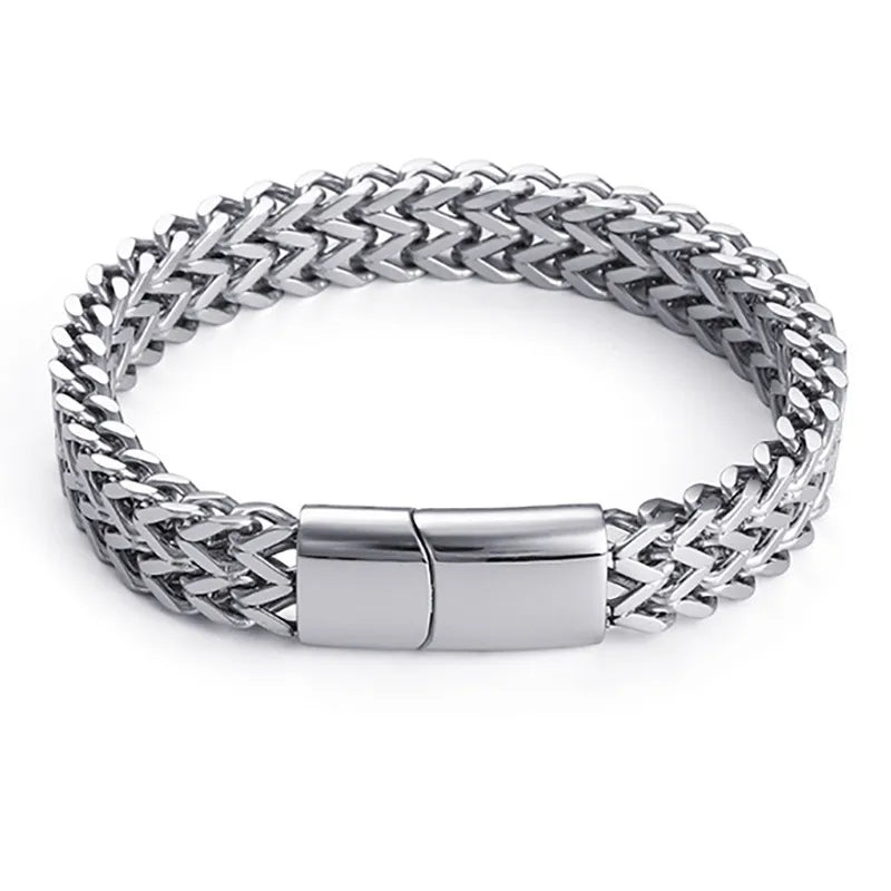 Trendy Titanium Steel Stainless Steel Men's Double Row Front And Back Chain Bracelet Fashionable Minimalist Geometric Pattern
