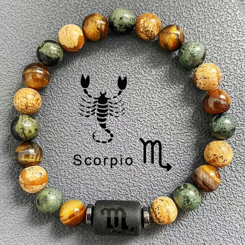 Twelve Constellation Natural Stone Beads Bracelet Hot Selling Tiger Eye Stone Picture Stone Mix and Match Couple Beads Bracelet