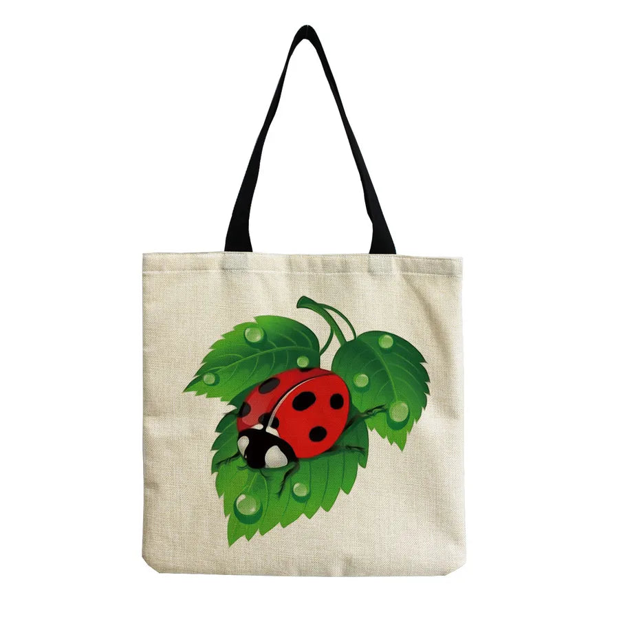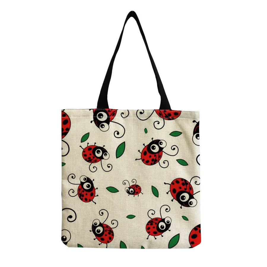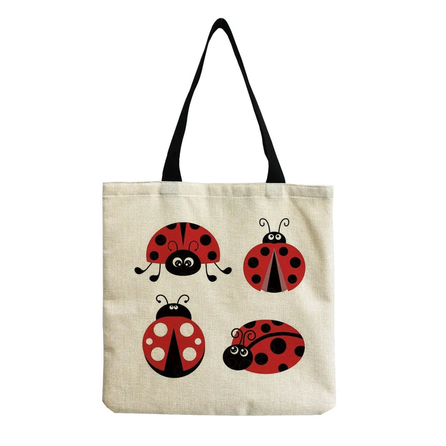 Unisex Cute Beetles Linen Shopping bags