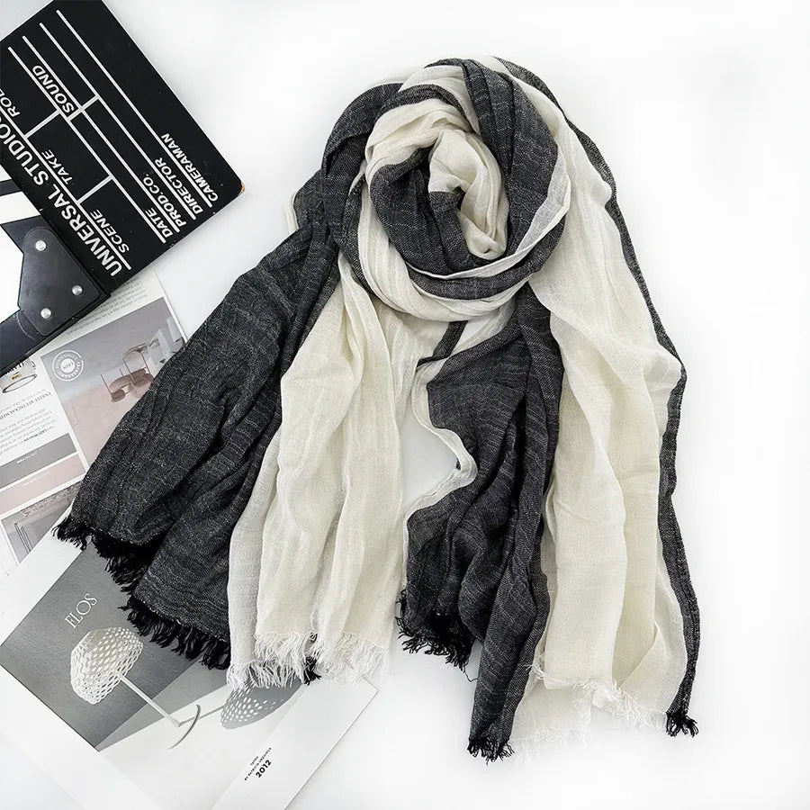 unisex sweet color block polyester long-staple cotton sewing cotton linen scarves
