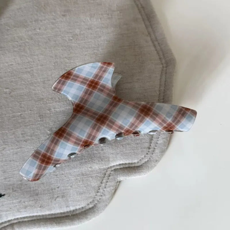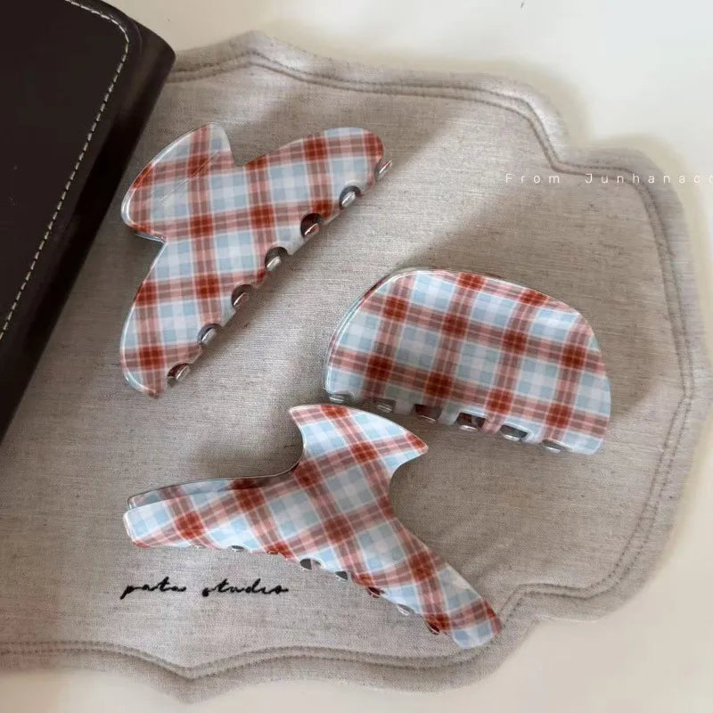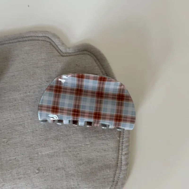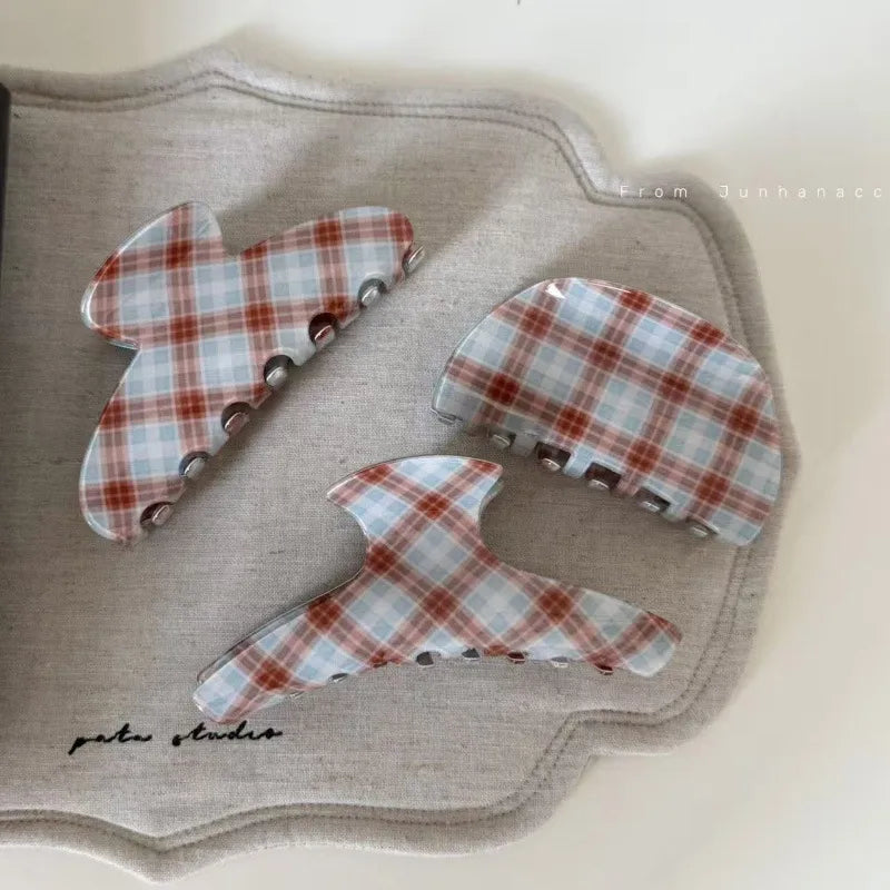 Vintage Plaid Acetate Medium Size Hair Clip Women Luxury Feeling Back Of Head Ponytail Holder Shark Clamp Tail Hair Clip