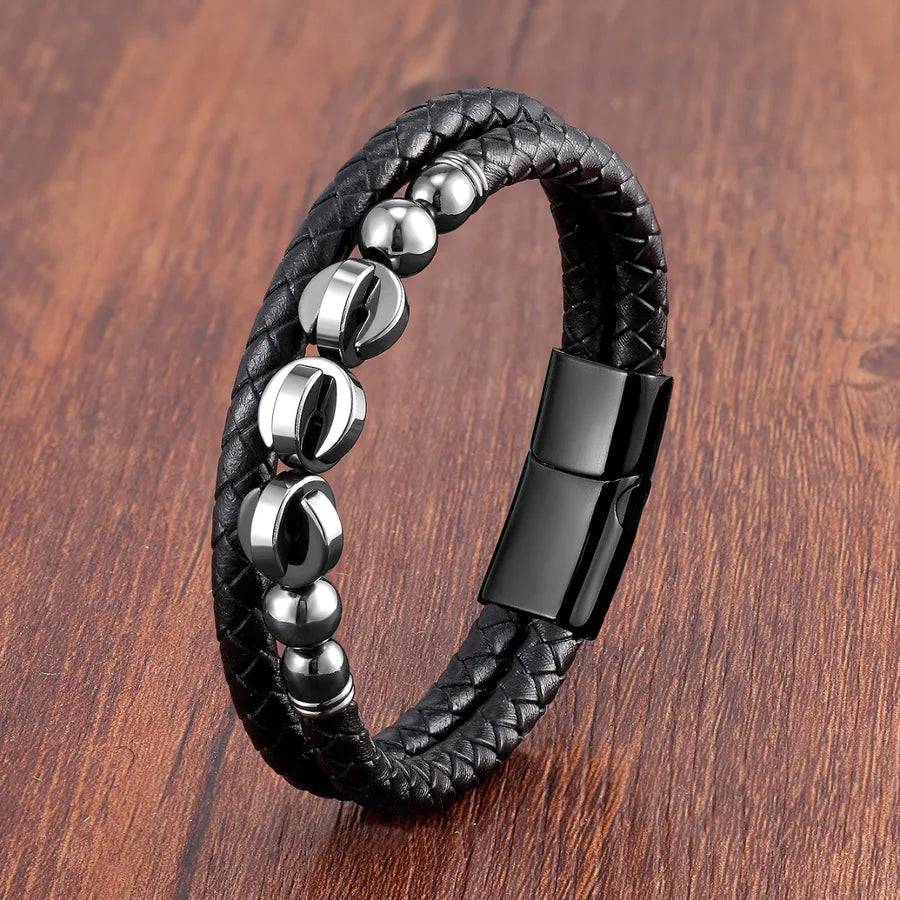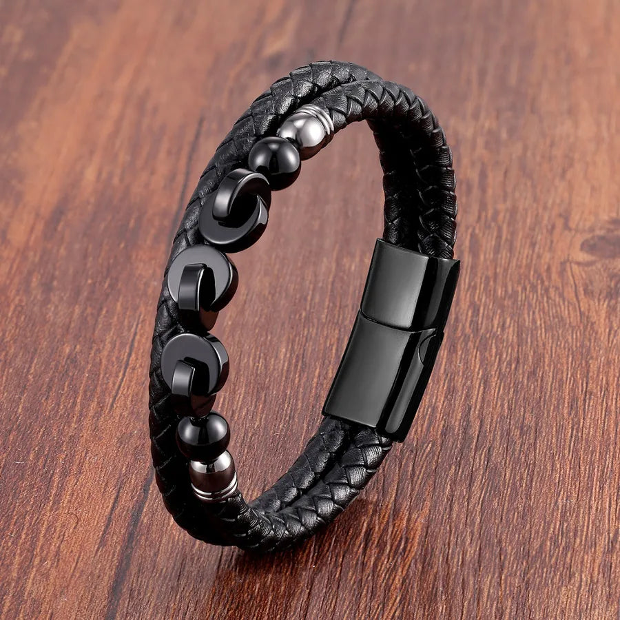 vintage style classic style round leather rope stone metal handmade metal button men's bracelets