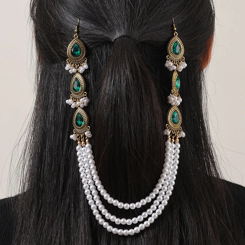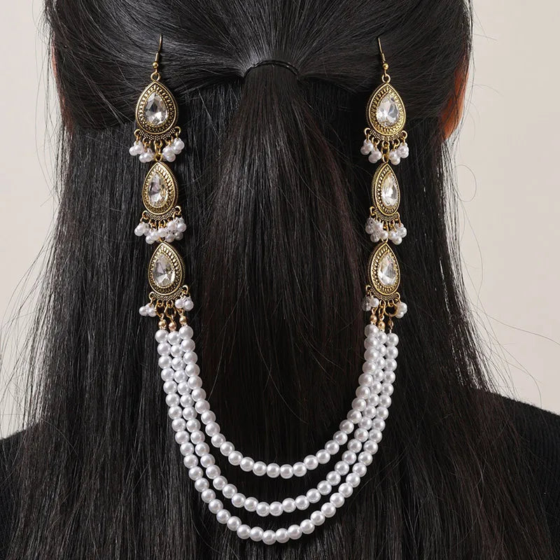 Vintage Style Women's Water Droplets Imitation Pearl Alloy hair chain