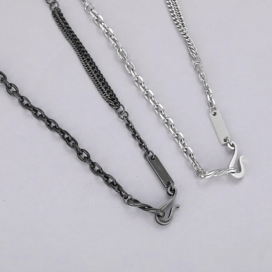 Vintage Titanium Steel Men's Necklace Multi-Link Simple Geometric Pattern Hip Hop Cuban Chain Fashionable Versatile Clavicle Chain