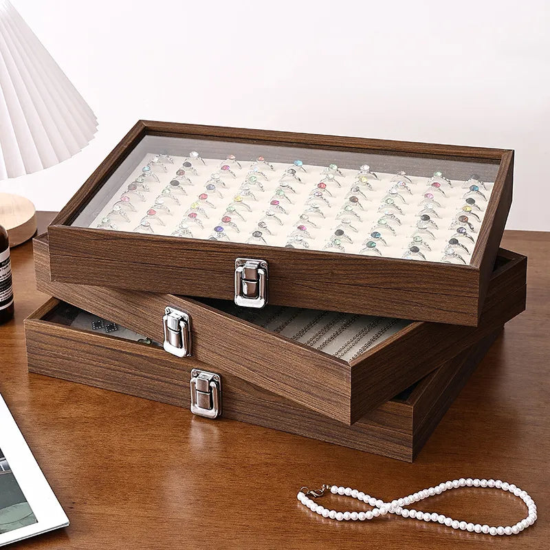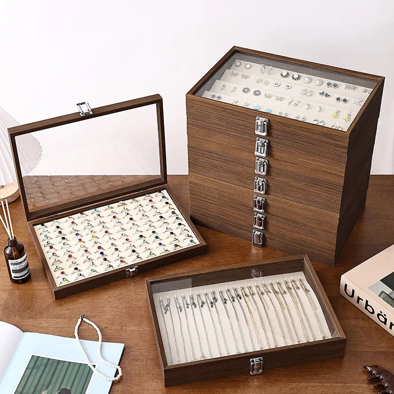 Walnut Color Luxury Covered Jewelry Box Ring Bracelet Earring Necklace Storage Box Dustproof Moistureproof Special Purpose