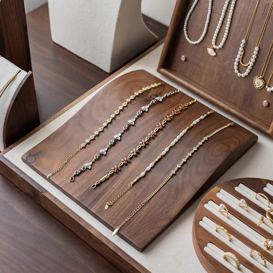 Walnut Jewelry Display Stand Bracelet Necklace Earring Rack Ring Holder Jewelry Tray Combination Fashion Accessory Showcase