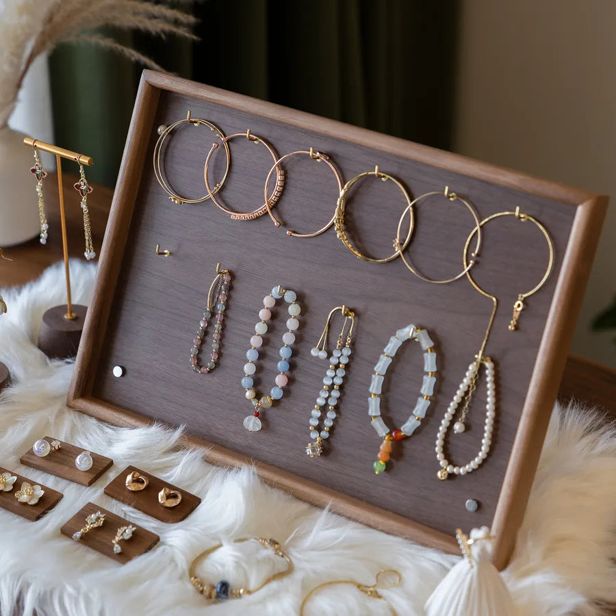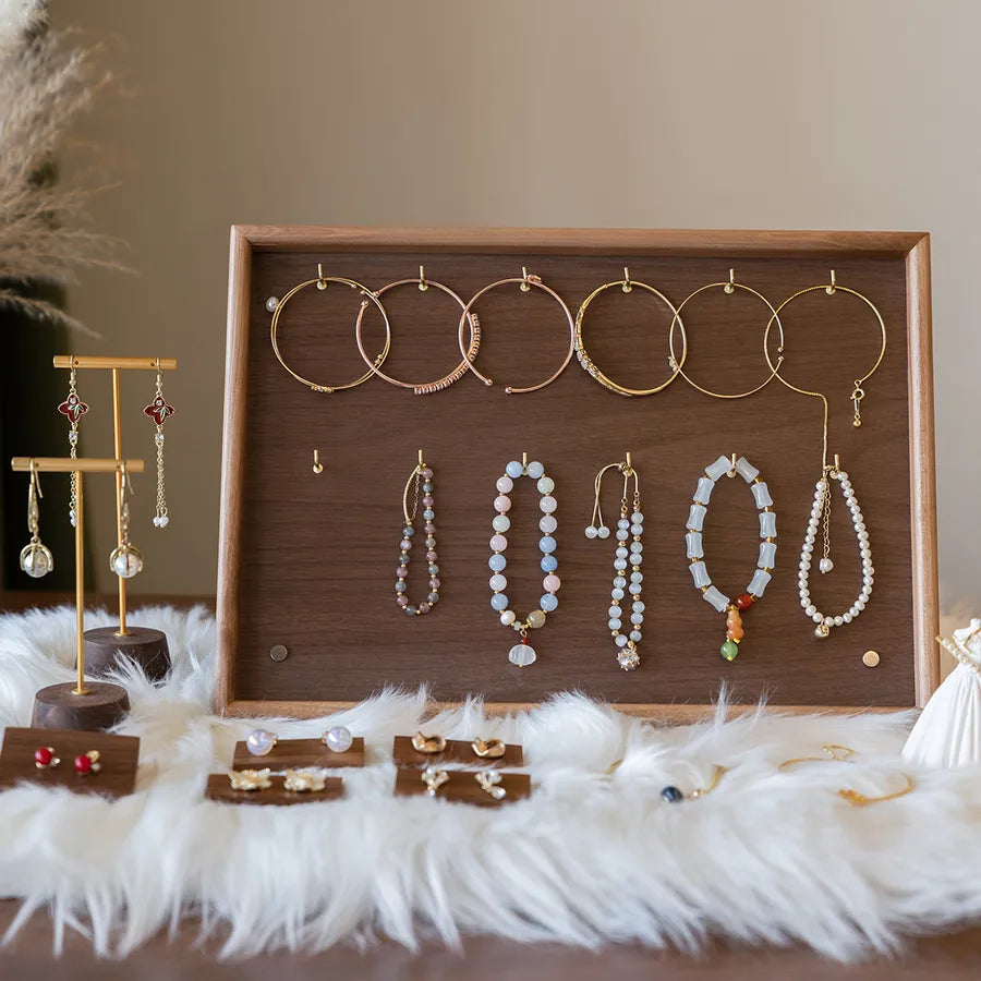 Walnut Wooden Bracelet Display Stand Crystal Ethnic Style Jewelry Organizer Hand Chain Earring Holder Craft Fair Stall Rack