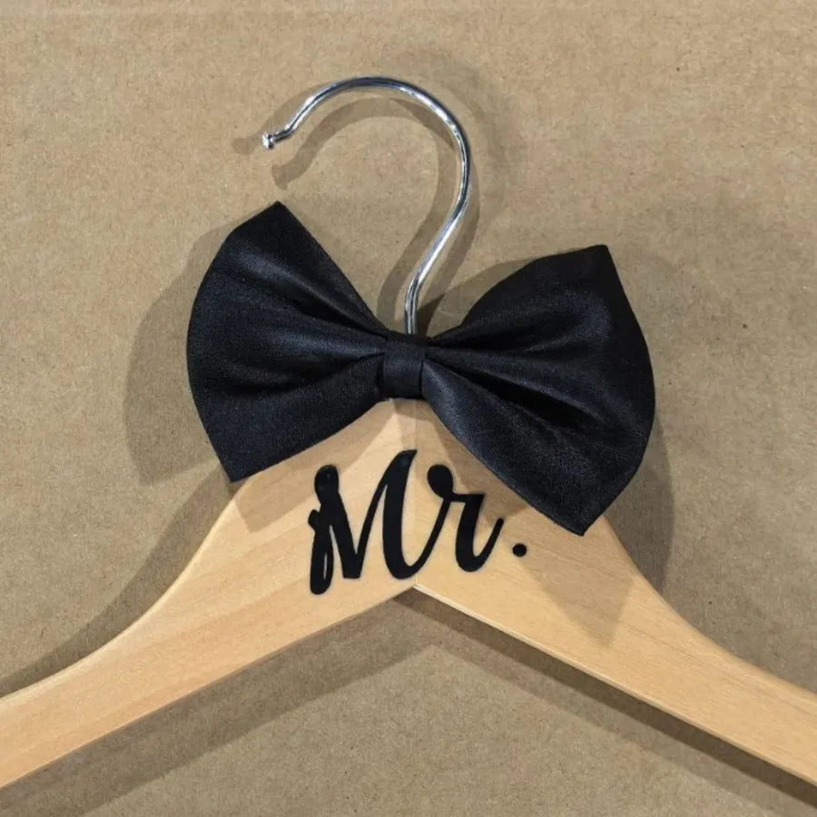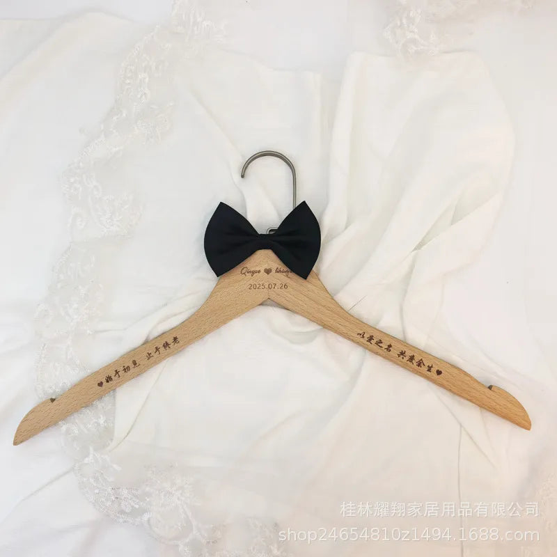 Wedding Dress Clothes Hanger Wooden Carved No Trace For Brides Grooms Modern Simple Style Butterfly Knot Logo Engraving