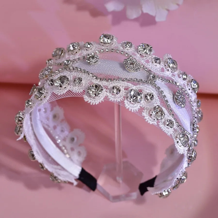 White Handmade Rhinestone Hairband Luxurious Popular Bride Headwear Versatile Style Wedding Hairband