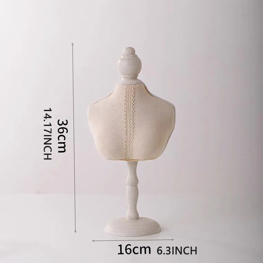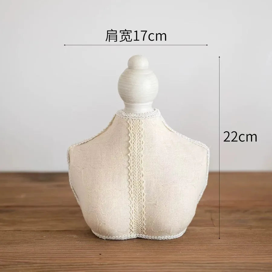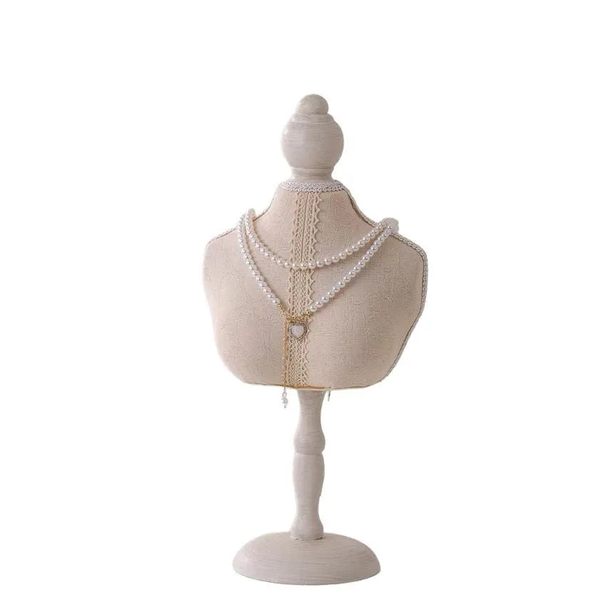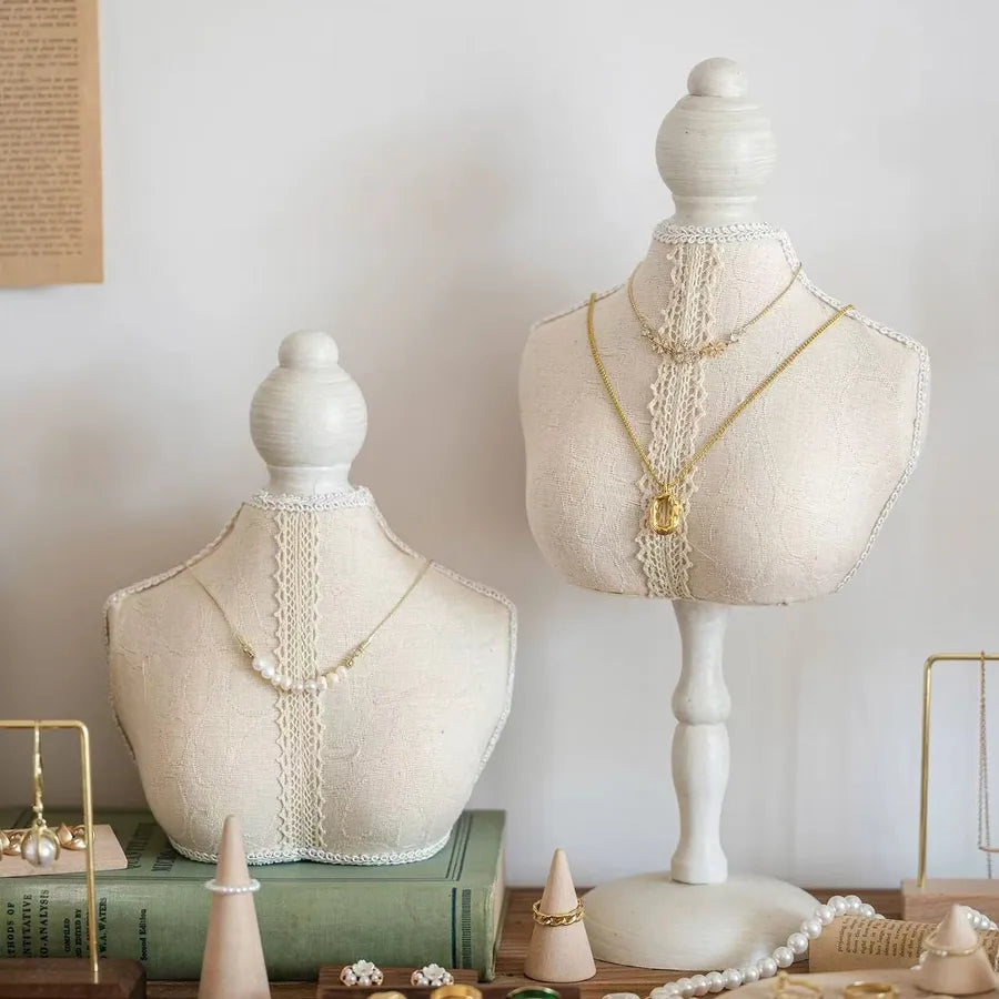 White Lace Necklace Jewelry Display Stand Portrait Neck Stall Props Velvet And Wooden Jewelry Accessory Show Rack Premium Feel