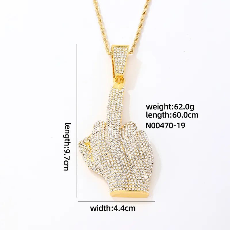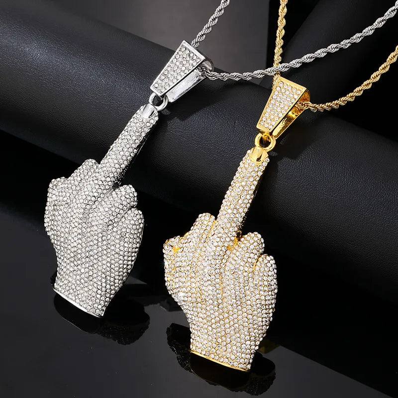 Wholesale Hip-Hop Vintage Style Rock Gesture 304 Stainless Steel Plating Inlay K Gold Plated Rhodium Plated Zircon Pendant Necklace