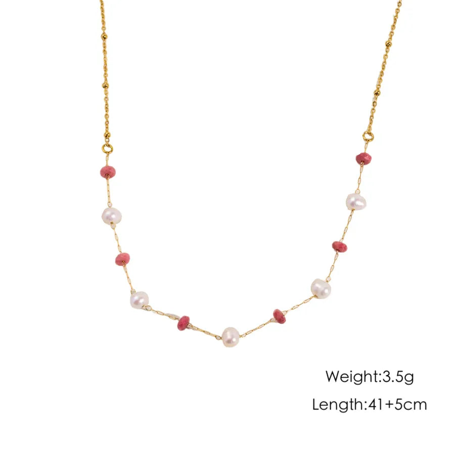 Wholesale Jewelry Casual Elegant Simple Style Geometric 304 Stainless Steel natural stone Natural Stone Pearl Inlay cable chain Necklace
