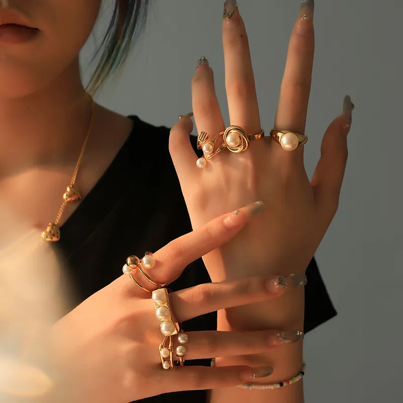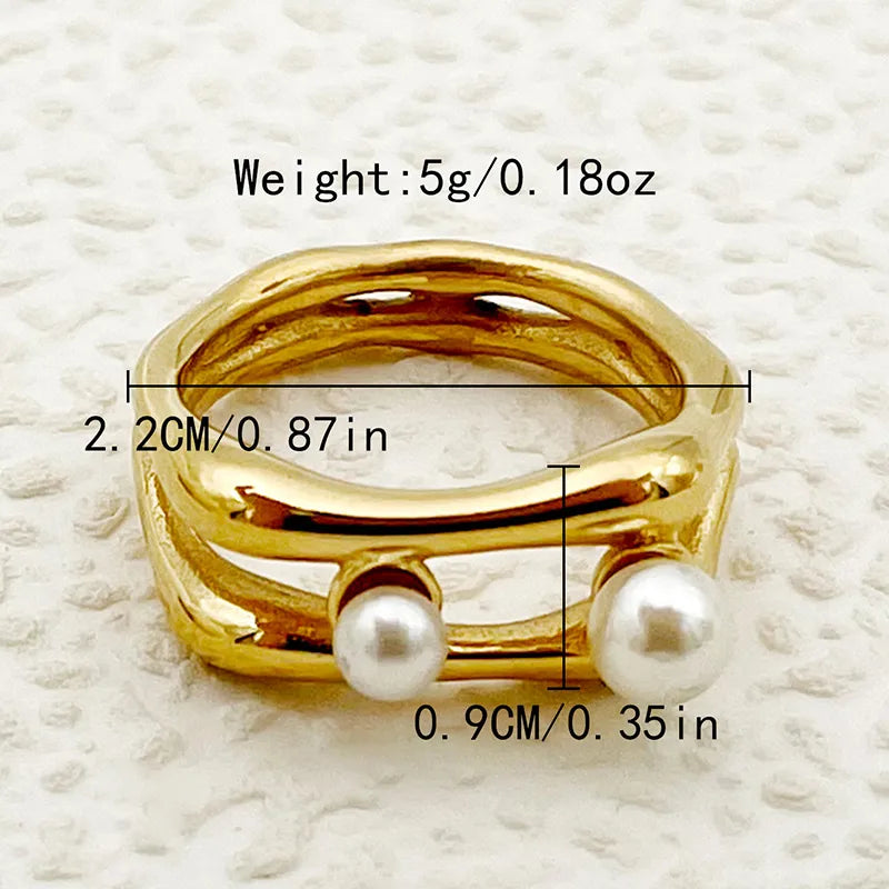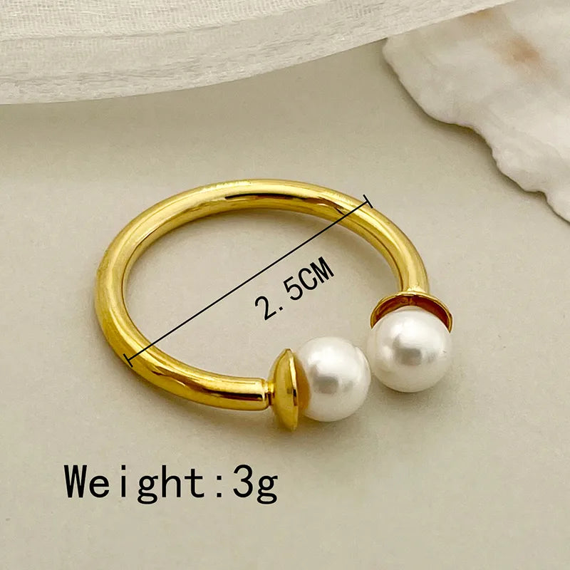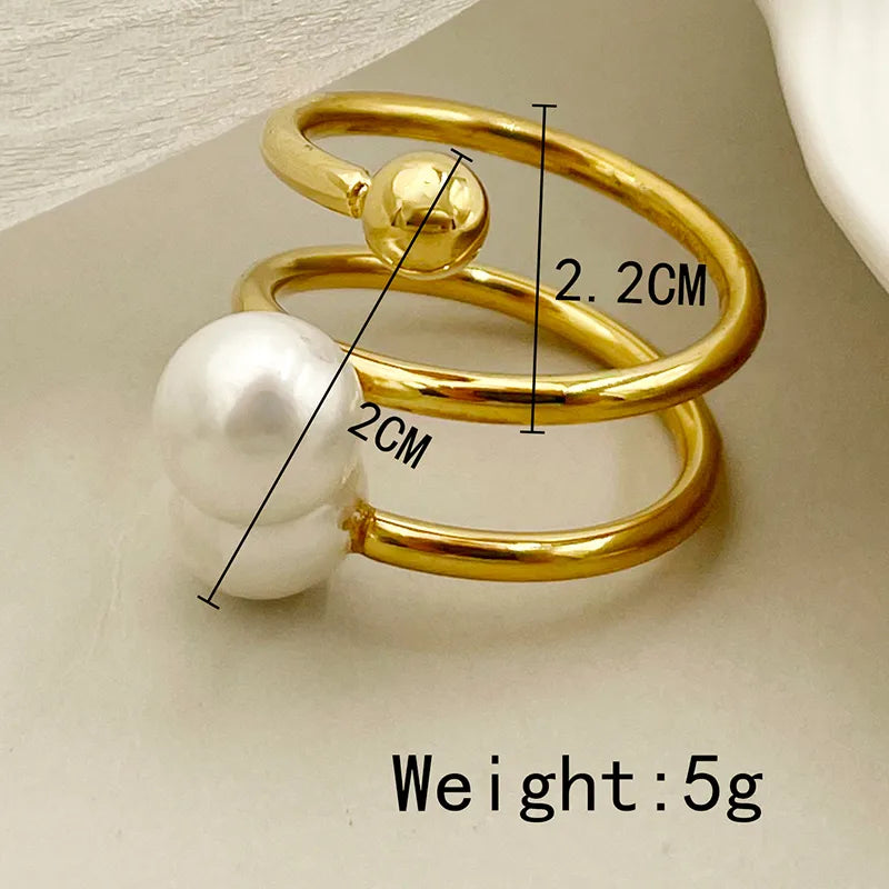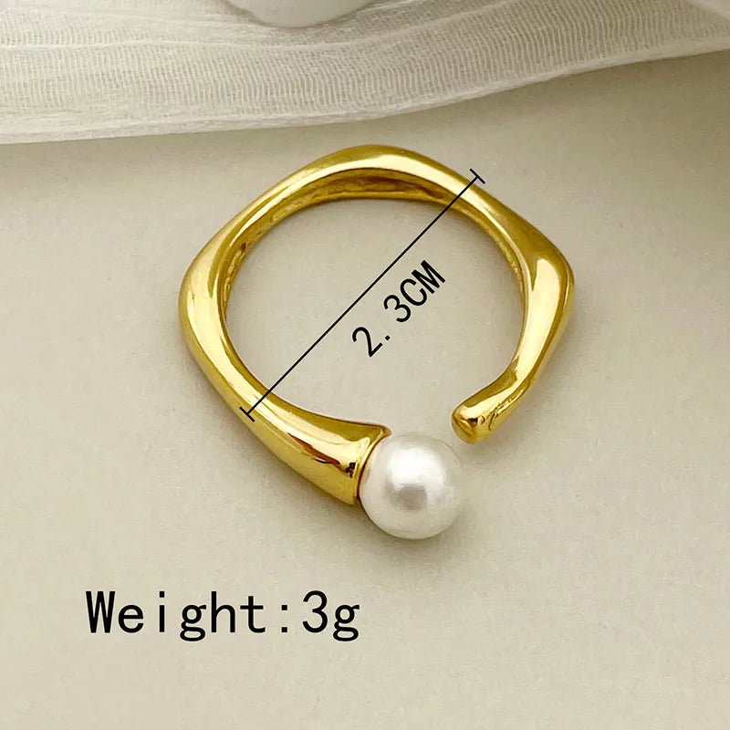 Wholesale Jewelry Elegant Baroque Style Modern Style Round Palm 304 Stainless Steel Pearl 14K Gold Plated Asymmetrical Inlay Rings