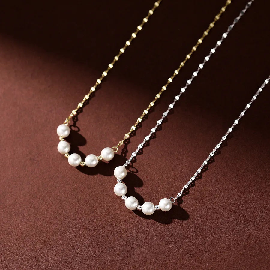 Wholesale Jewelry Elegant Luxurious Queen Round Simple Artificial Pearl Titanium Steel Beaded Necklace