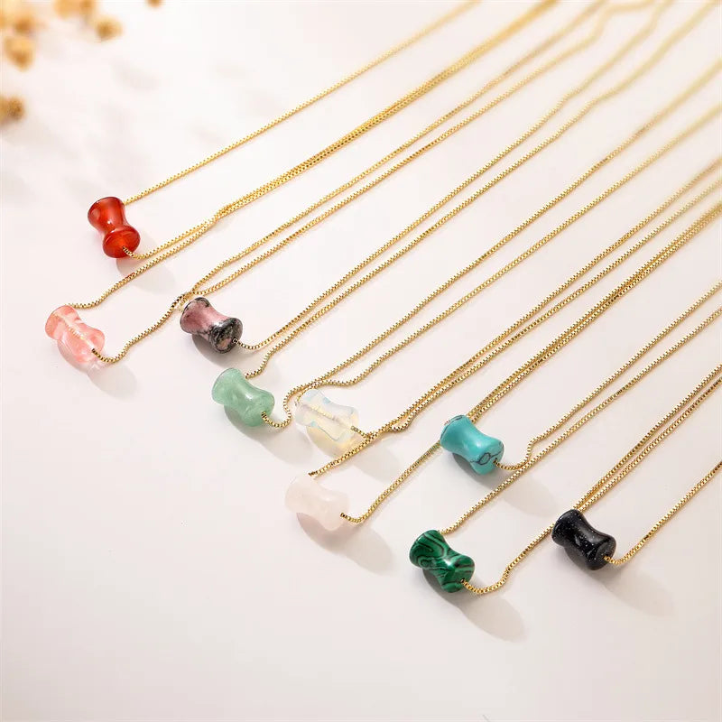 Wholesale Jewelry Retro Classic Style Geometric natural stone Green Aventurine Copper Pendant Necklace