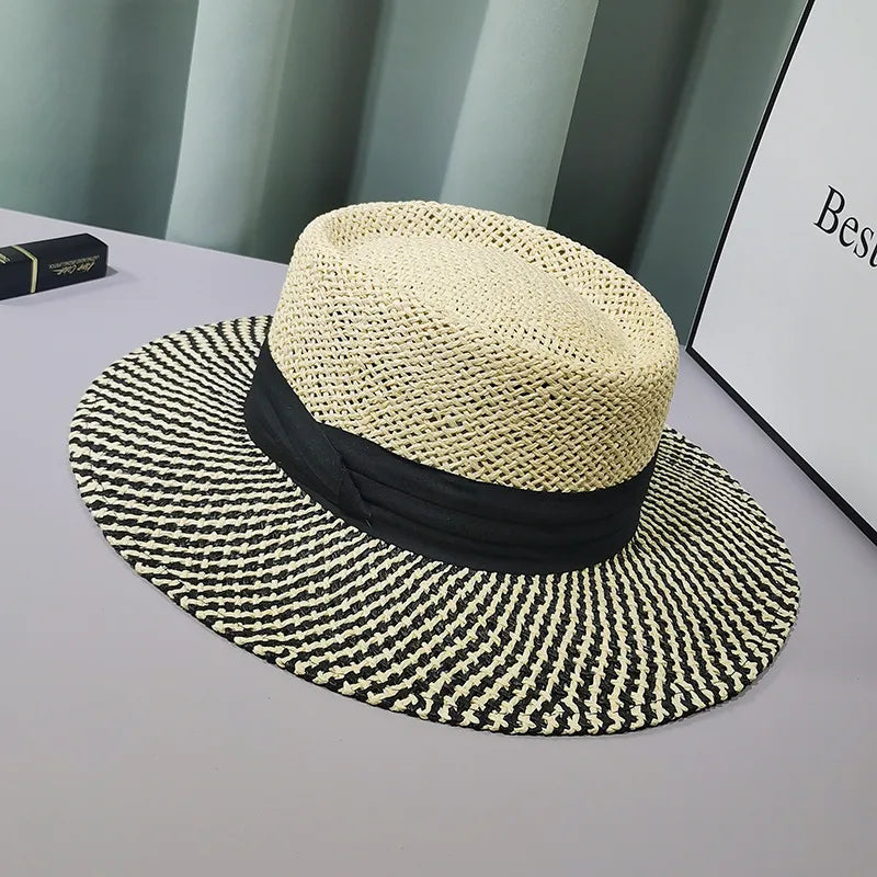 Women's Basic Color Block Big Eaves Straw Hat