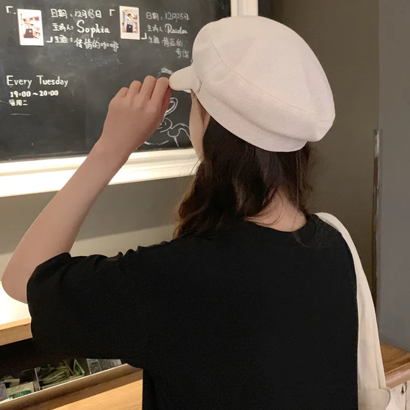 Women's Basic Retro Solid Color Curved Eaves Beret Hat
