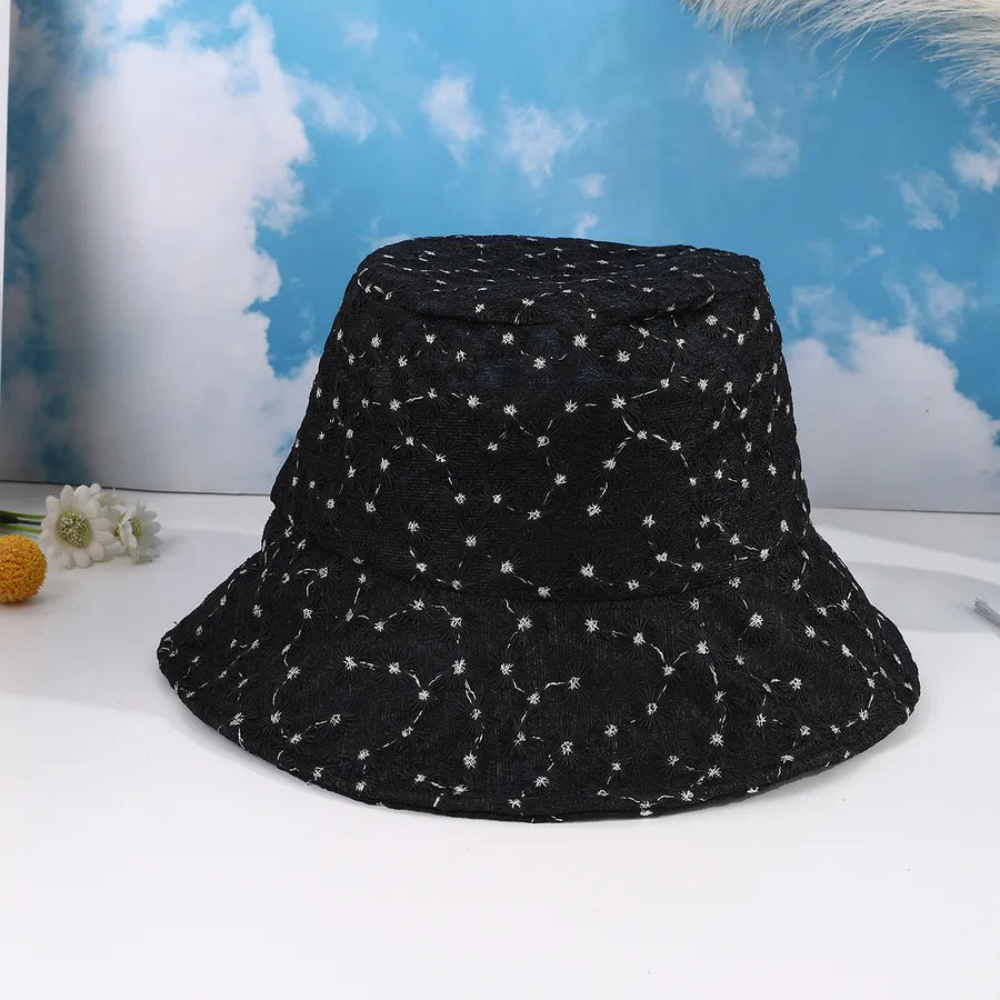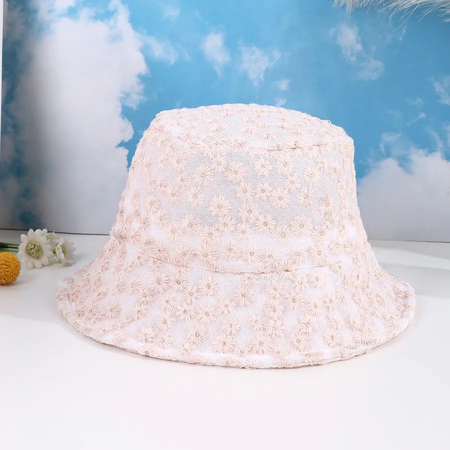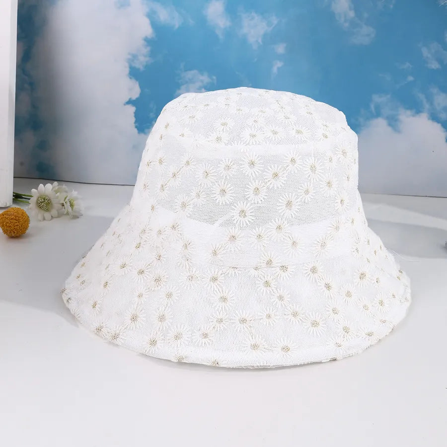 Women's Casual Japanese Style Korean Style Daisy Embroidery Hollow Out Wide Eaves Bucket Hat