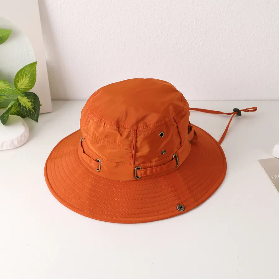 Women's Casual Japanese Style Solid Color Iron button Wide Eaves Bucket Hat