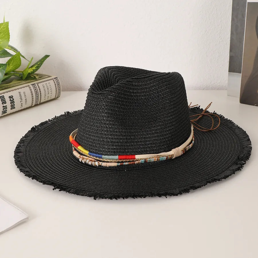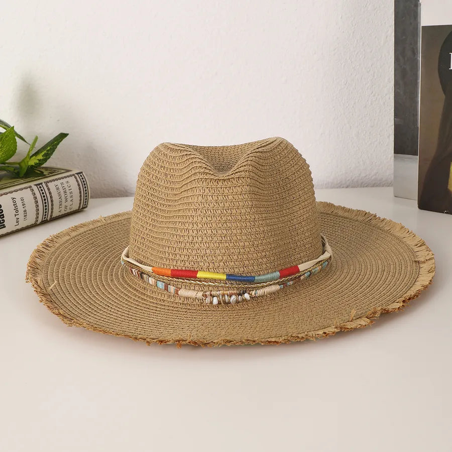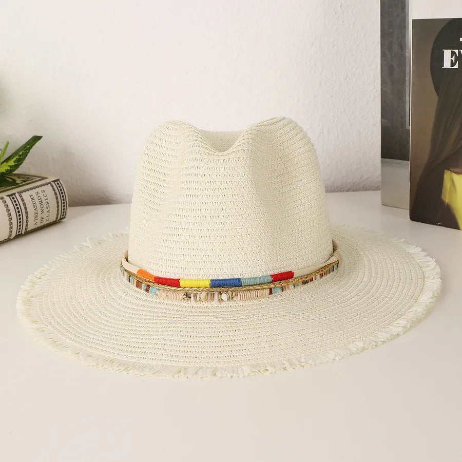 Women's Casual Vacation Beach Solid Color Beaded Big Eaves Straw Hat