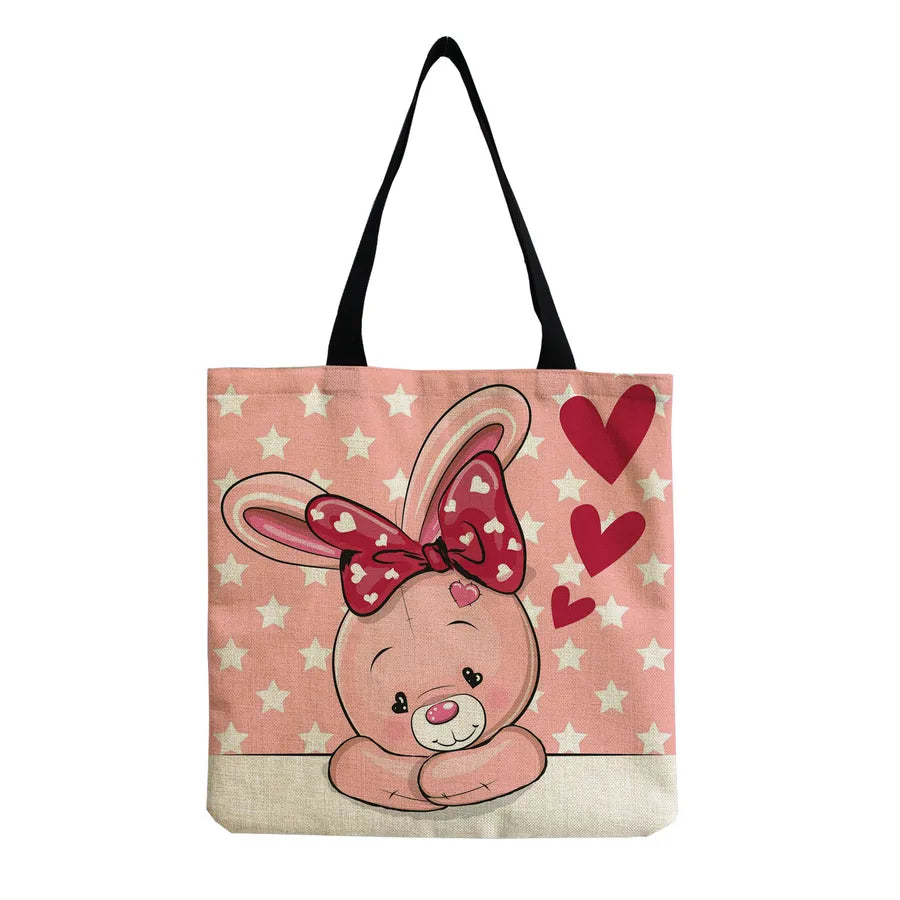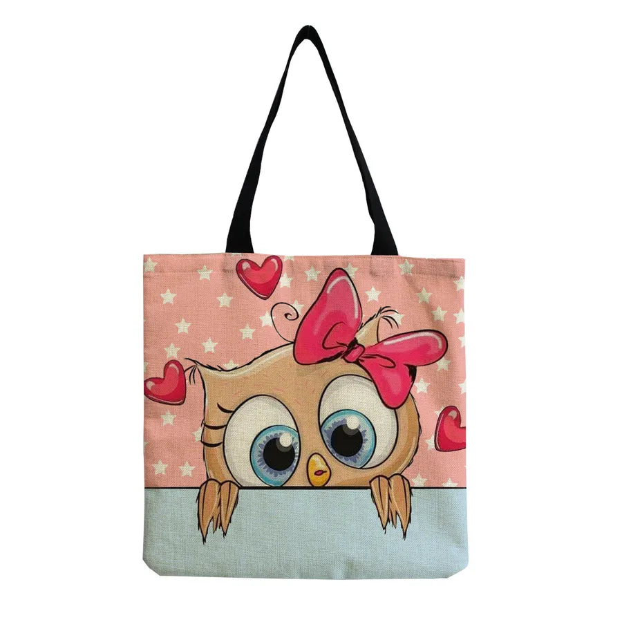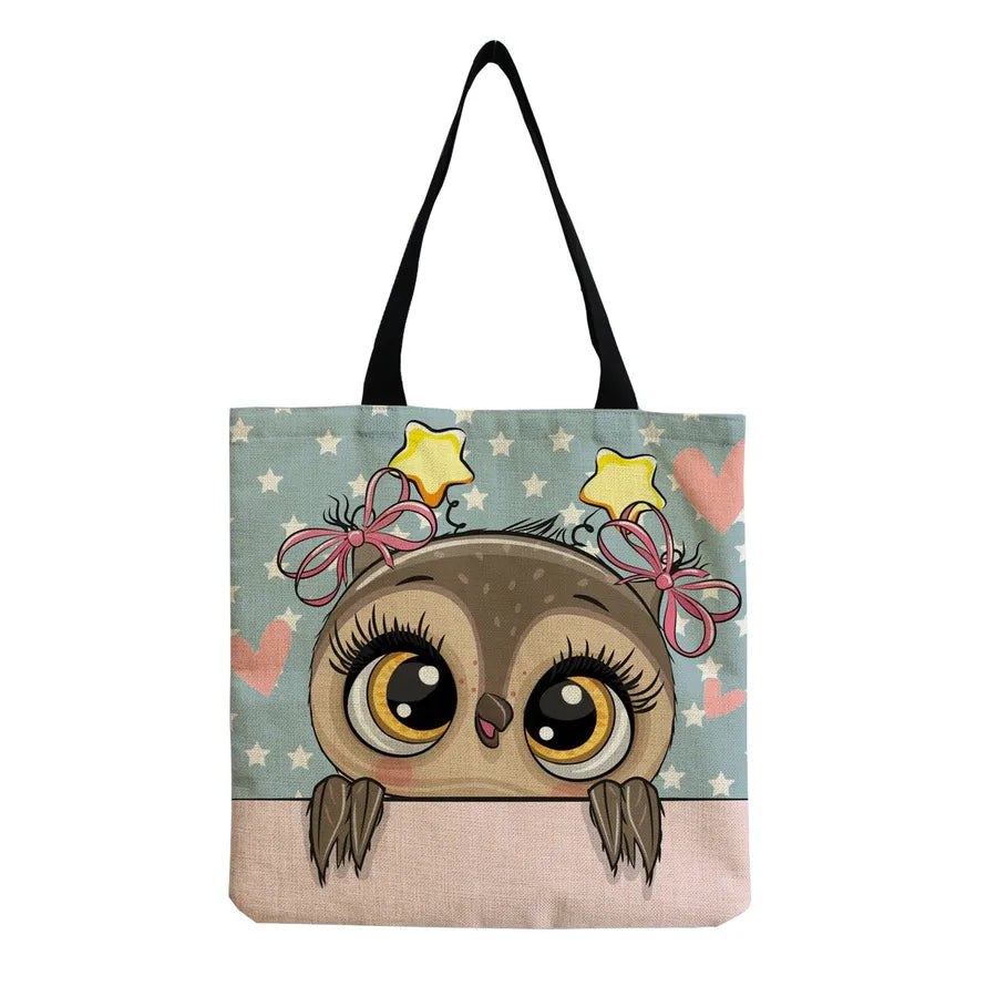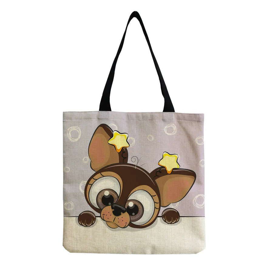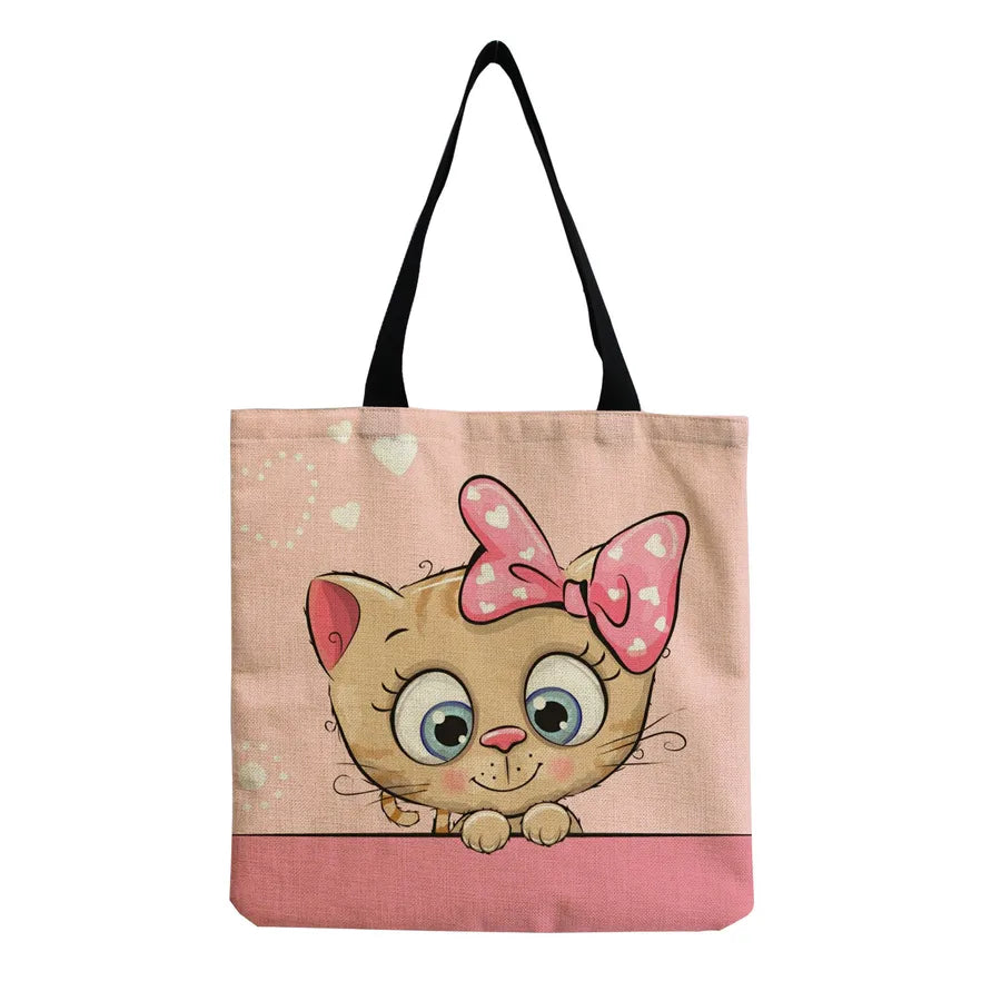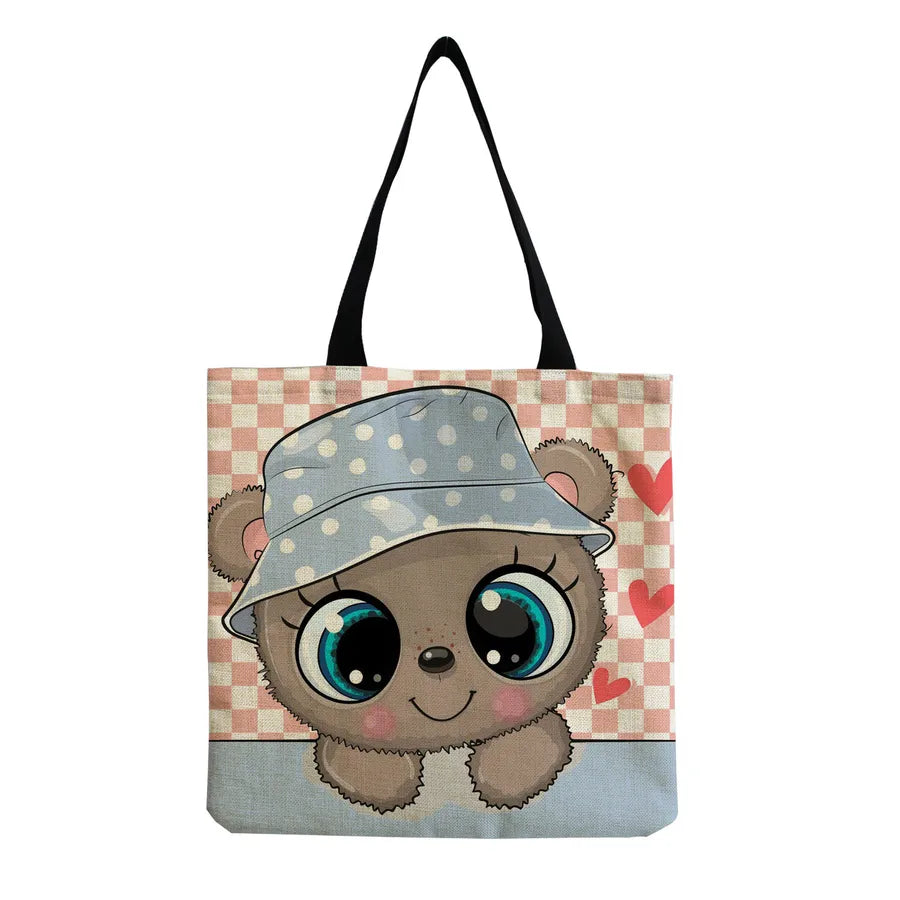 Women's Cute Animal Cartoon Linen Shopping bags