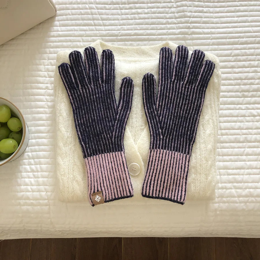 women's elegant basic stripe gloves 1 pair
