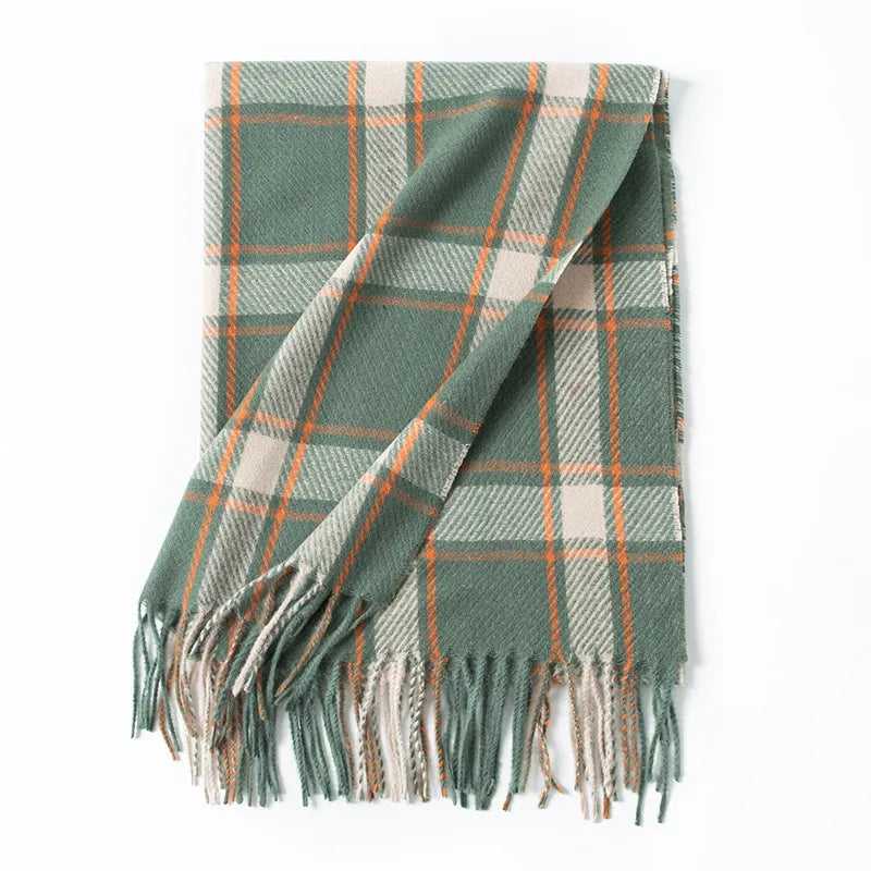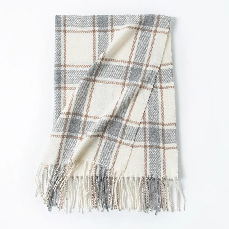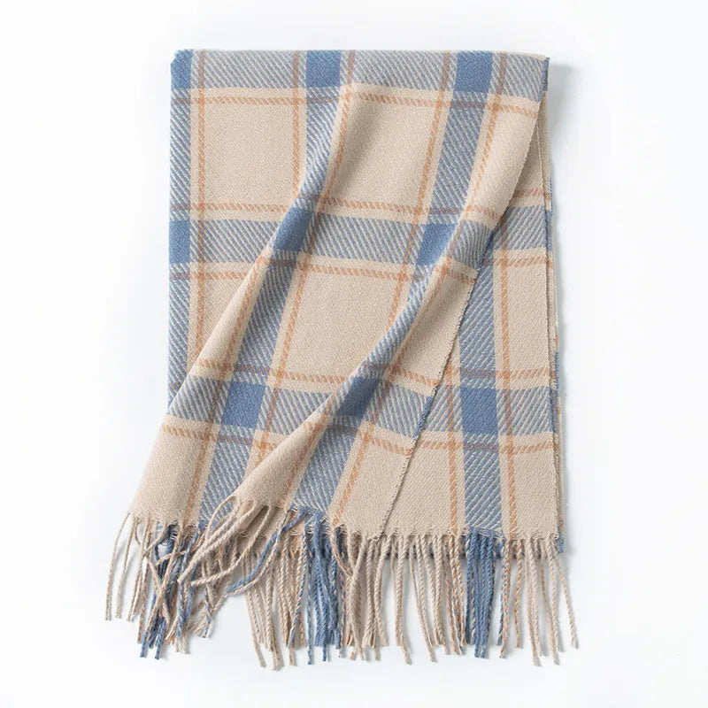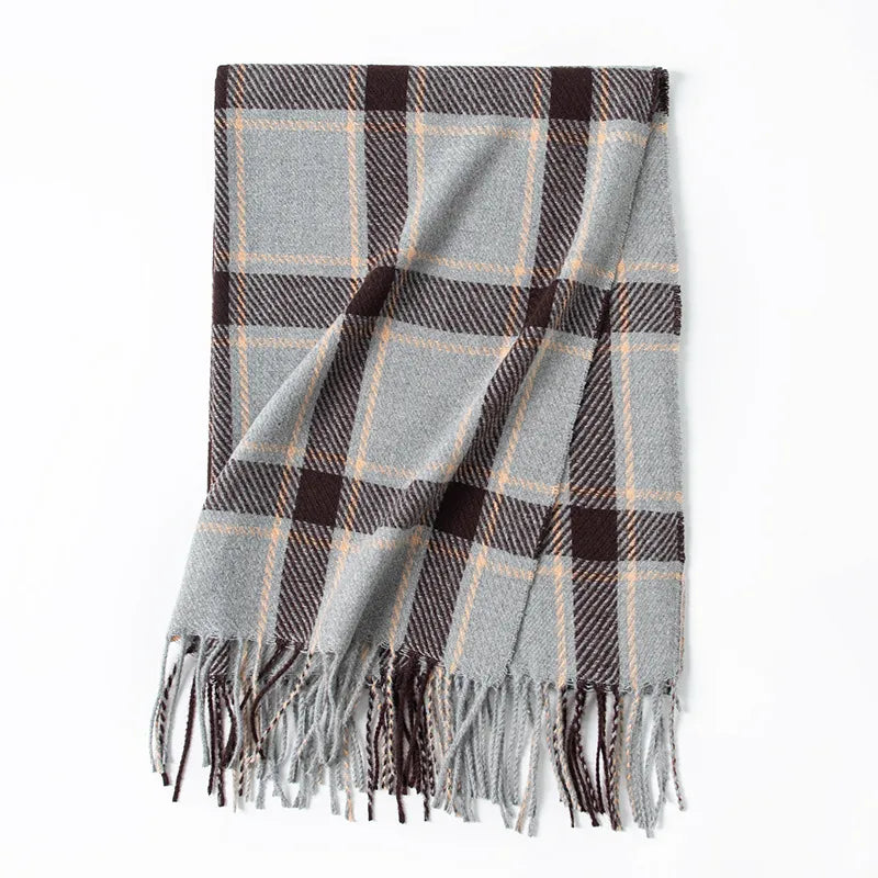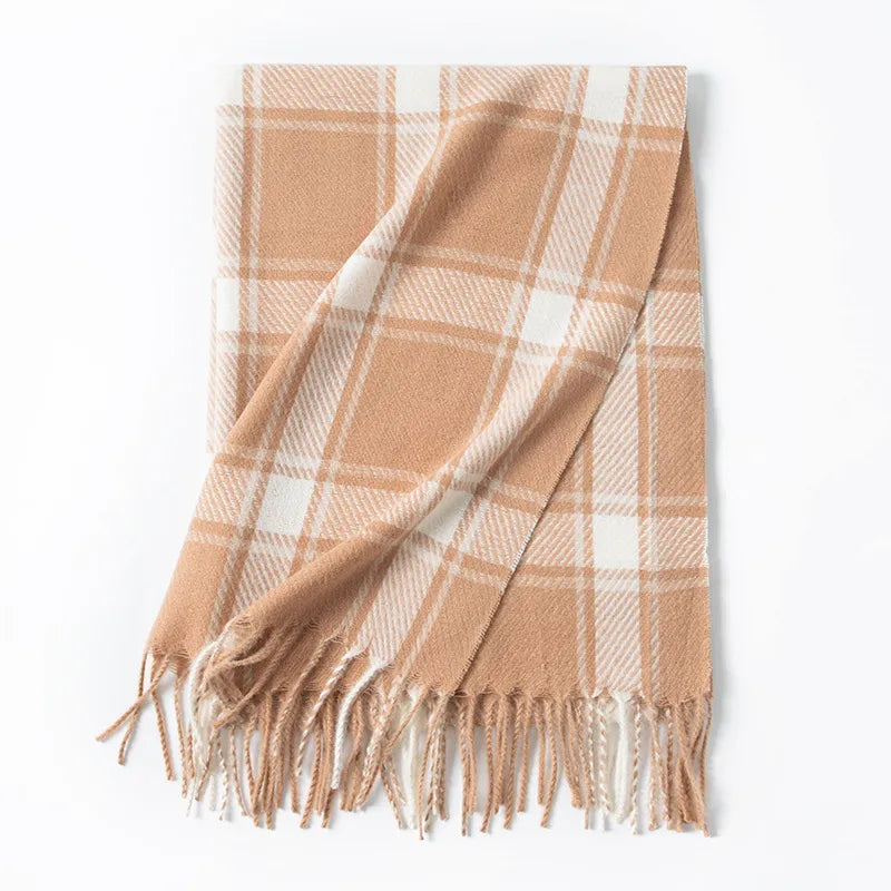 Women's Elegant Plaid Imitation cashmere Tassel Scarf