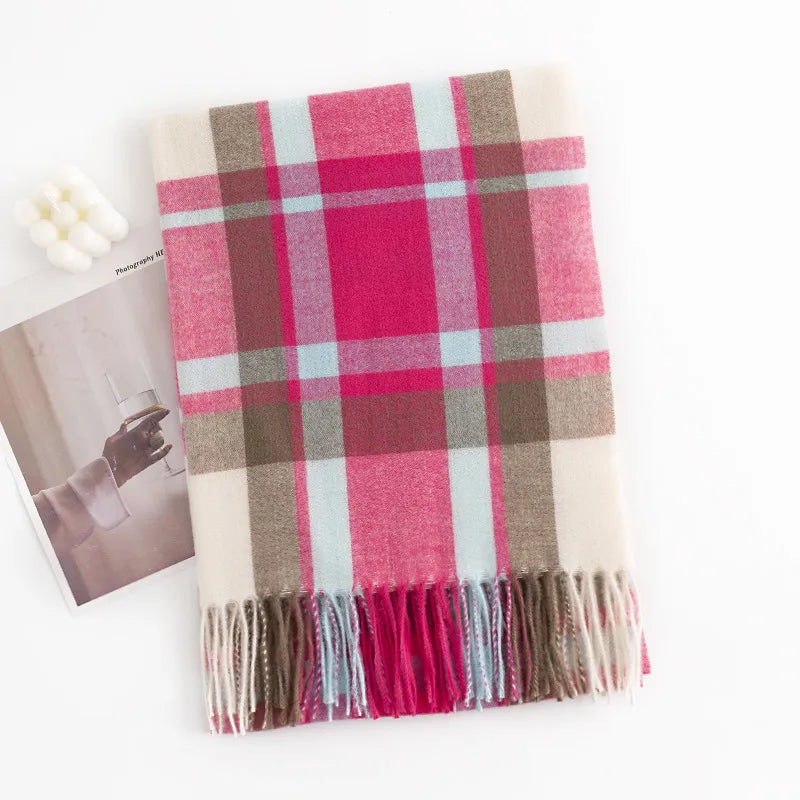 Women's Elegant Plaid Imitation cashmere Tassel Scarf
