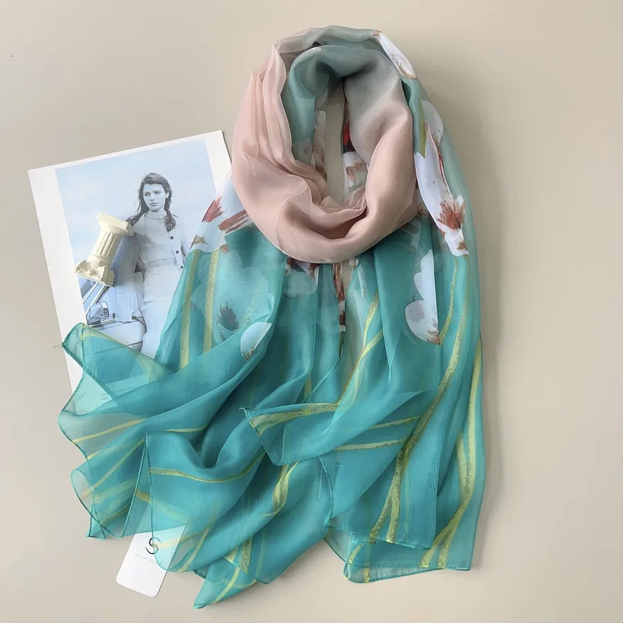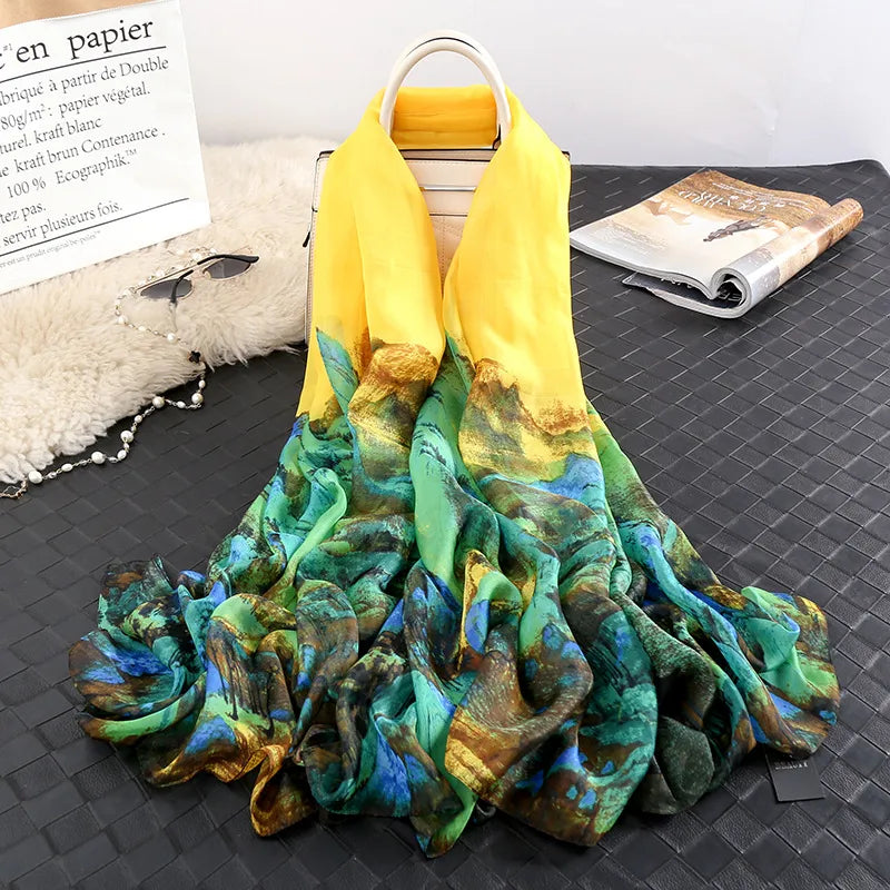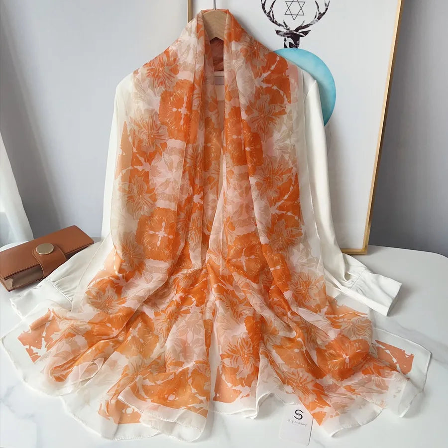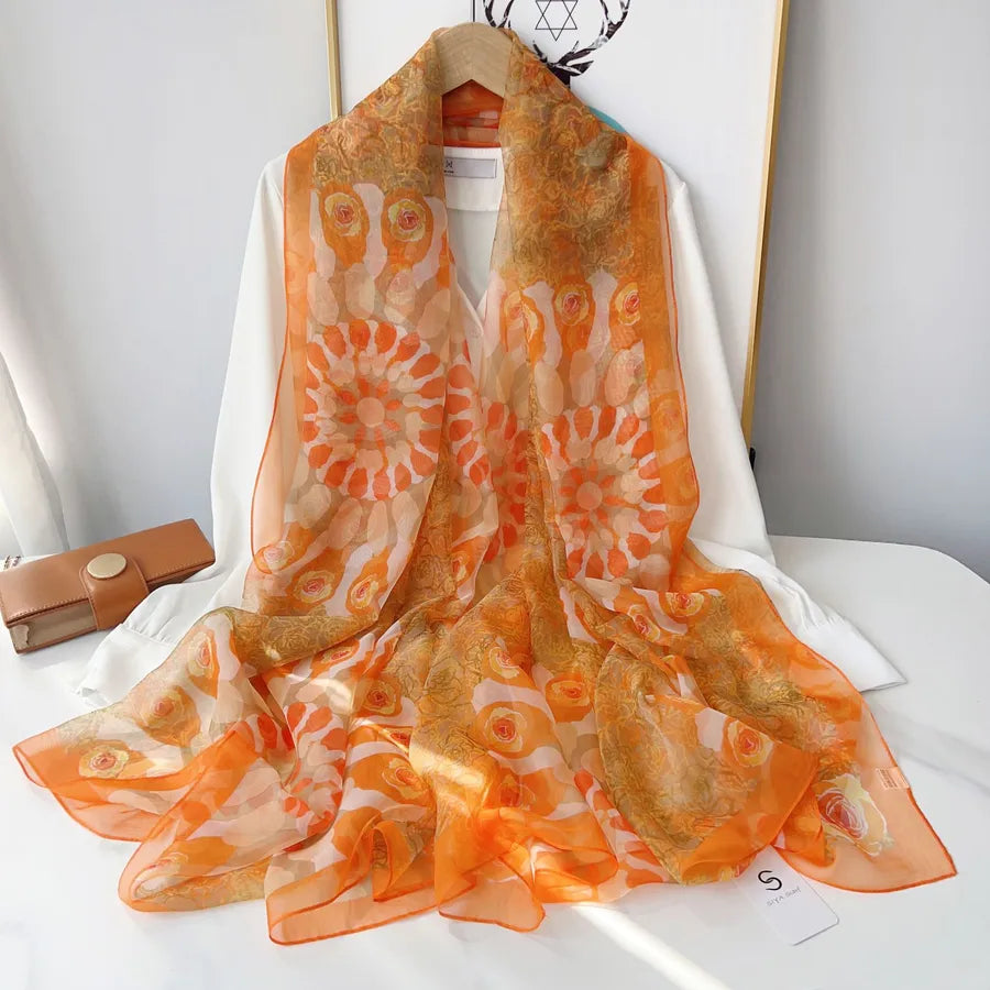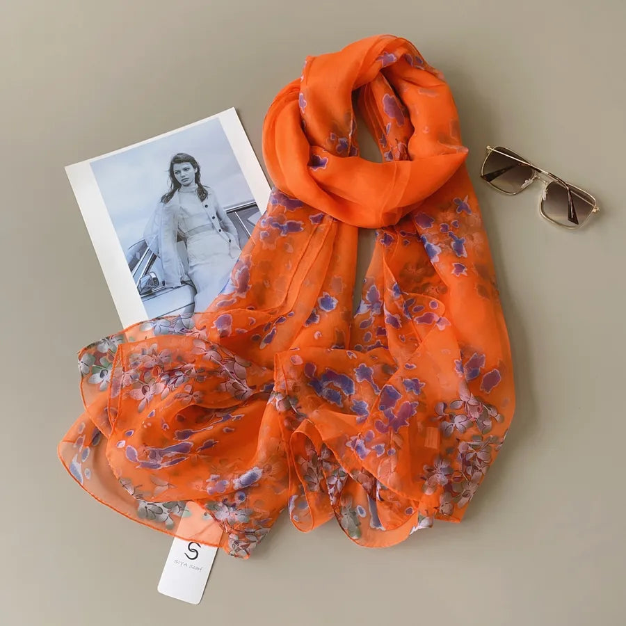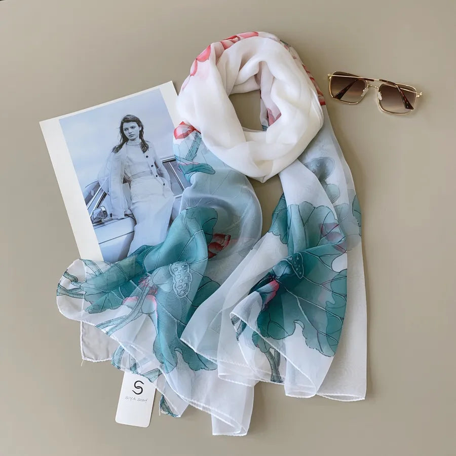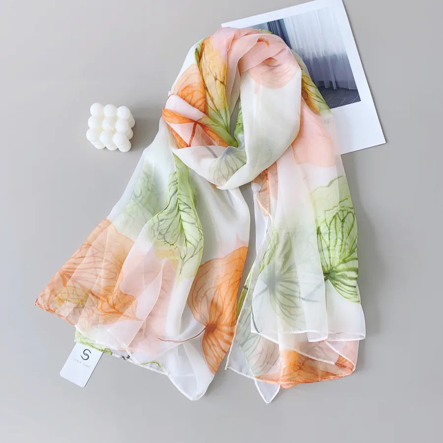 Women's Elegant Printing Polyester Chiffon Silk Scarf