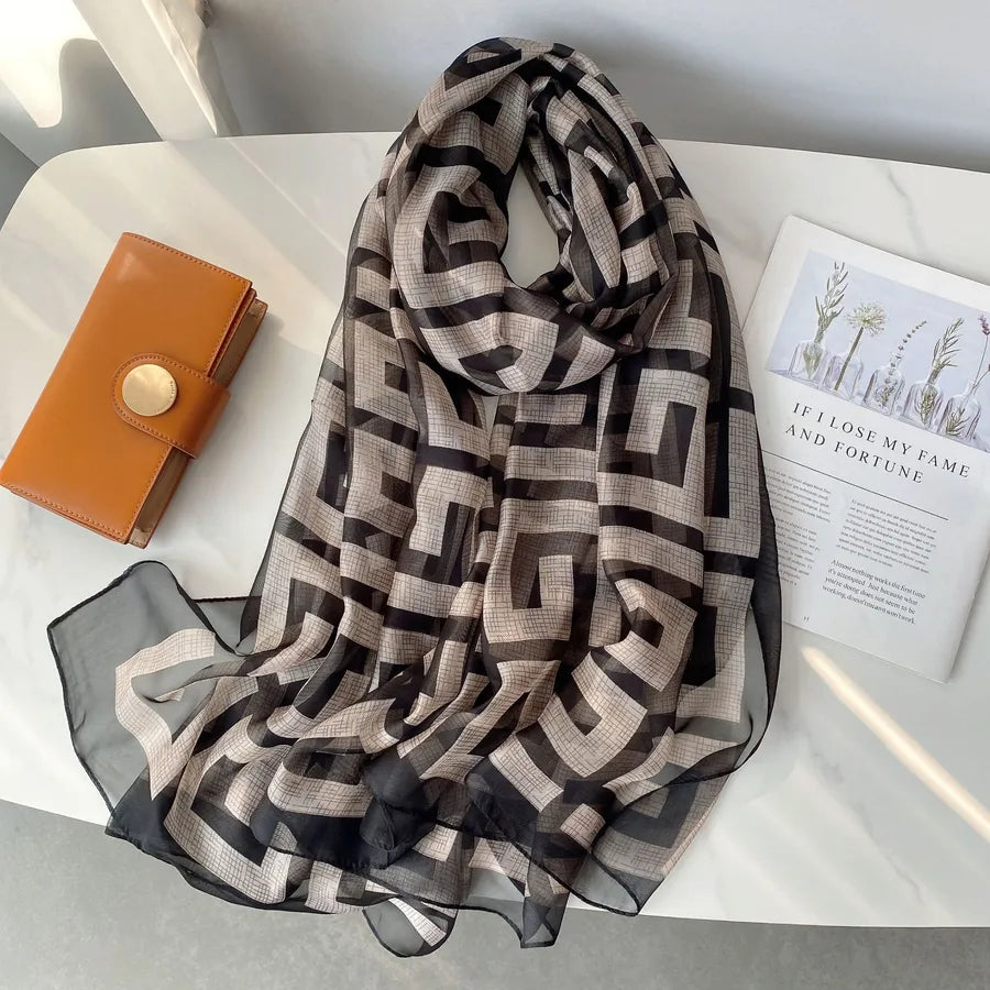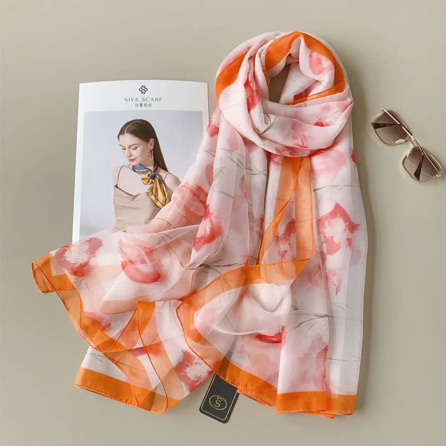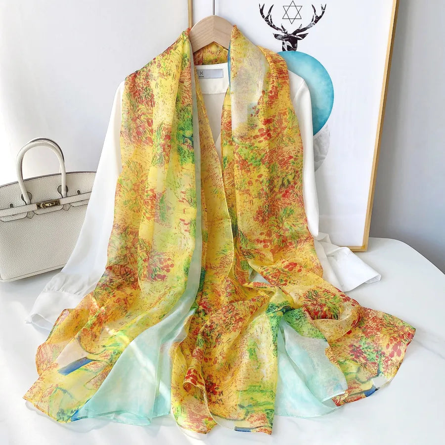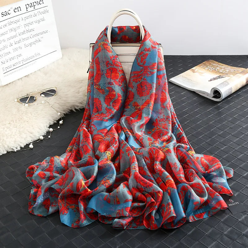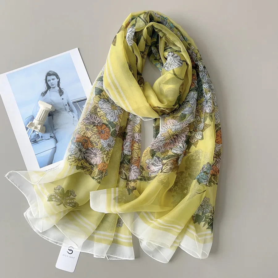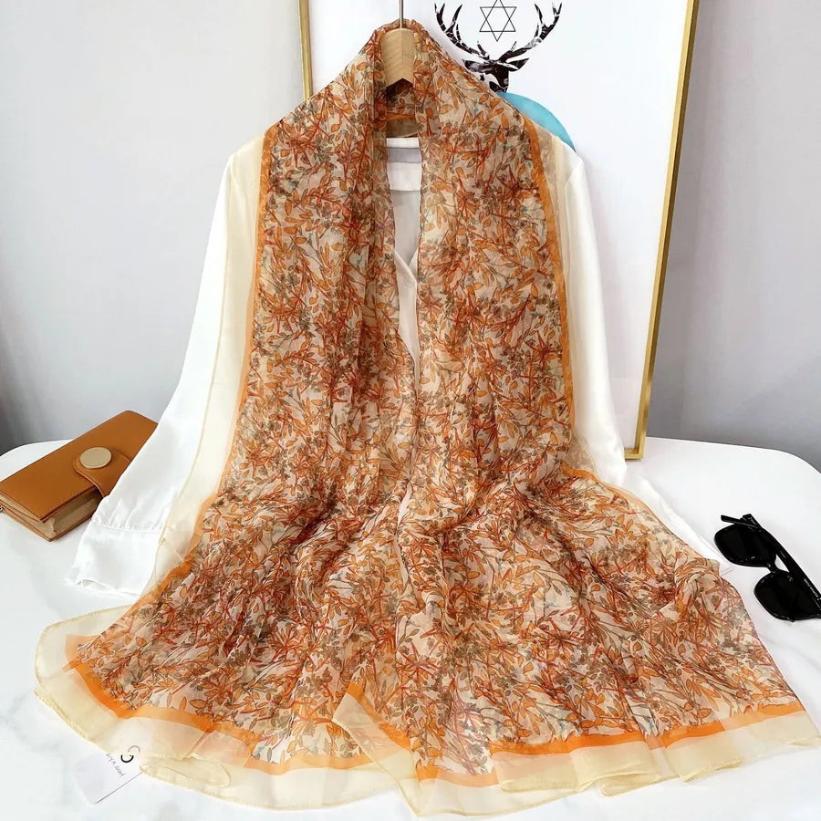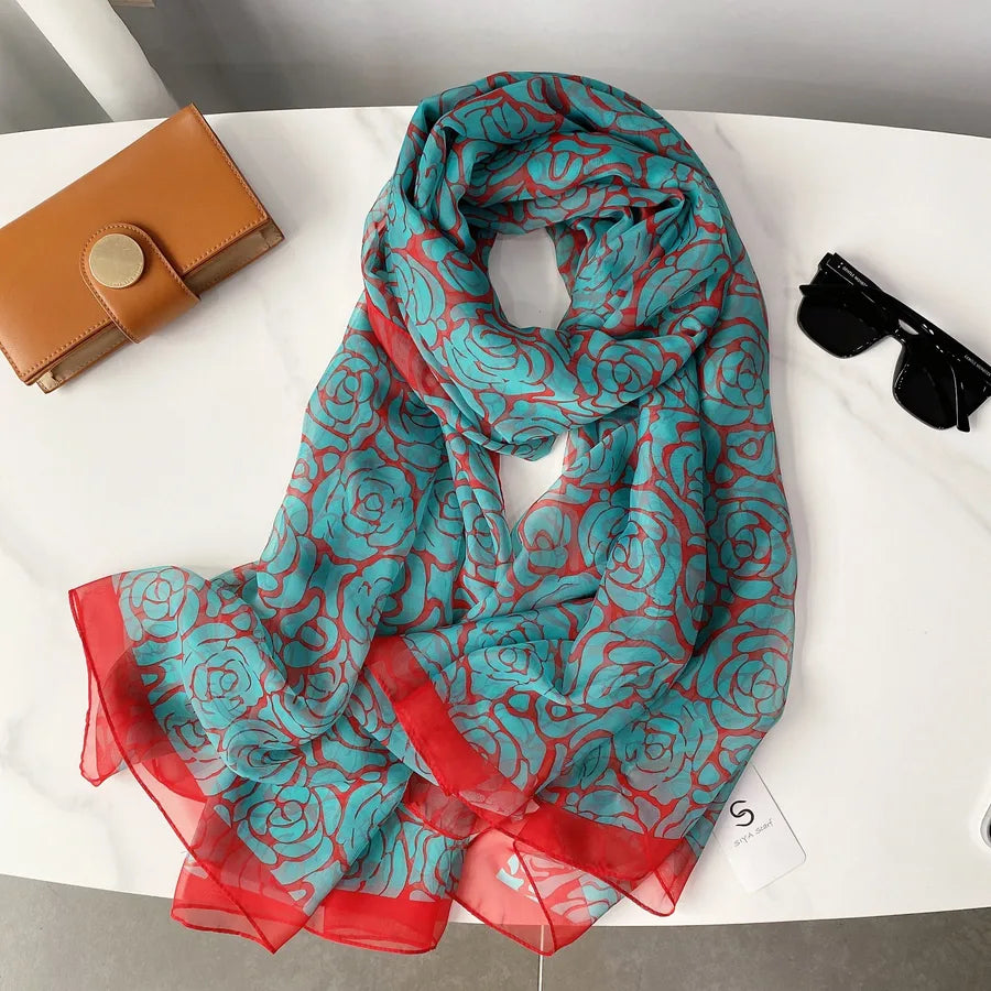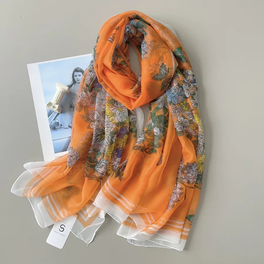 Women's Elegant Printing Polyester Chiffon Silk Scarf