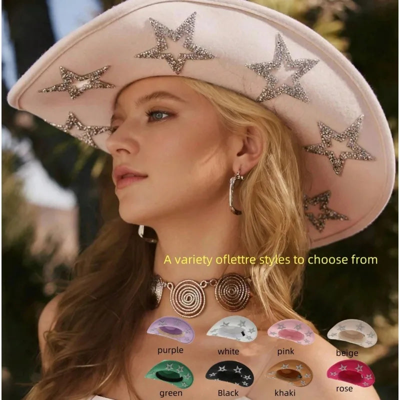 Women's Elegant Retro Star Big Eaves Fedora hat