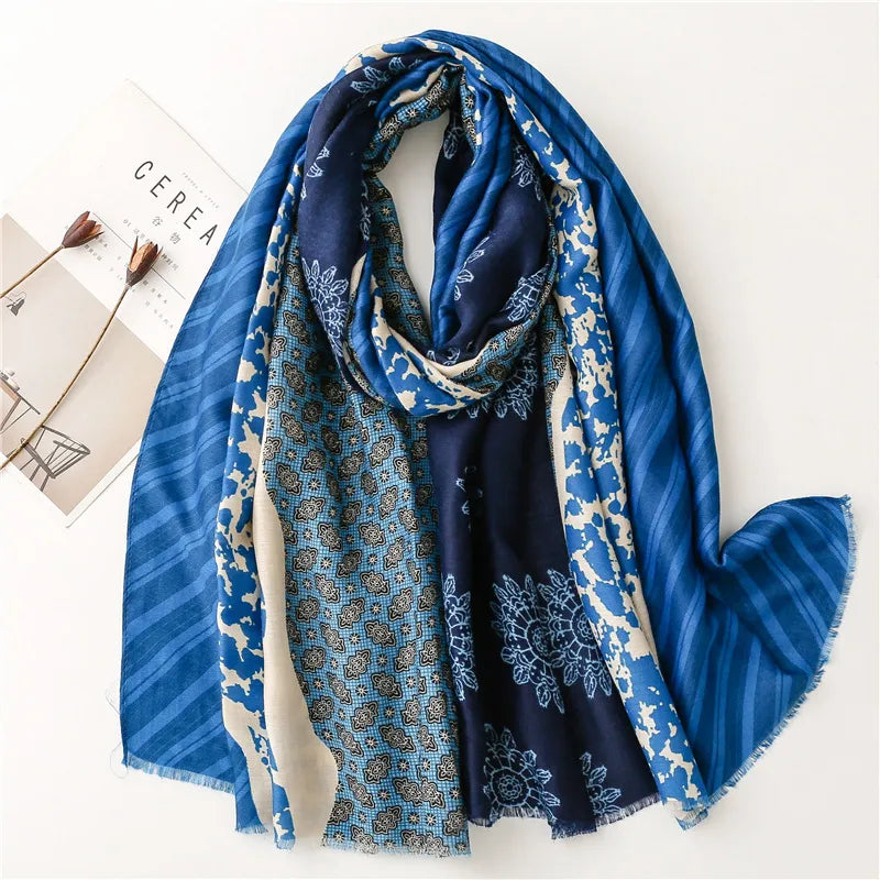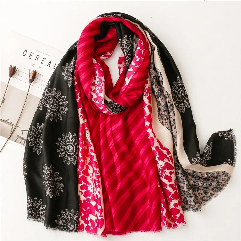 women's fashion color block polyester winter scarves