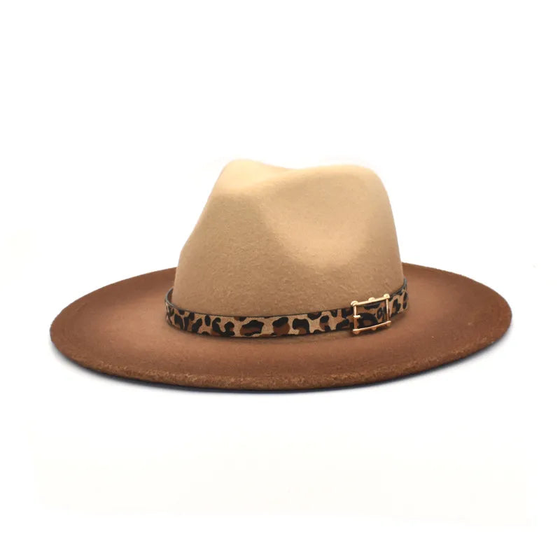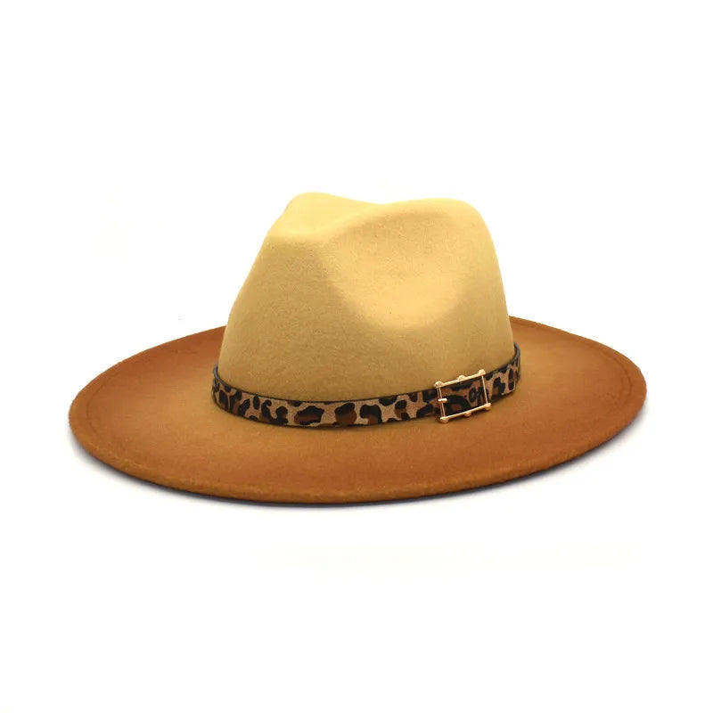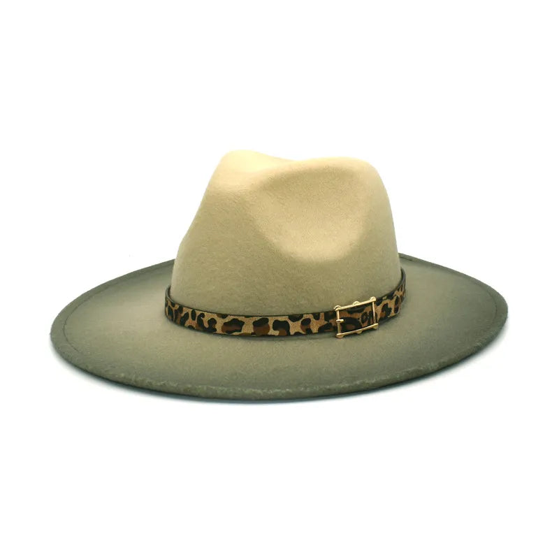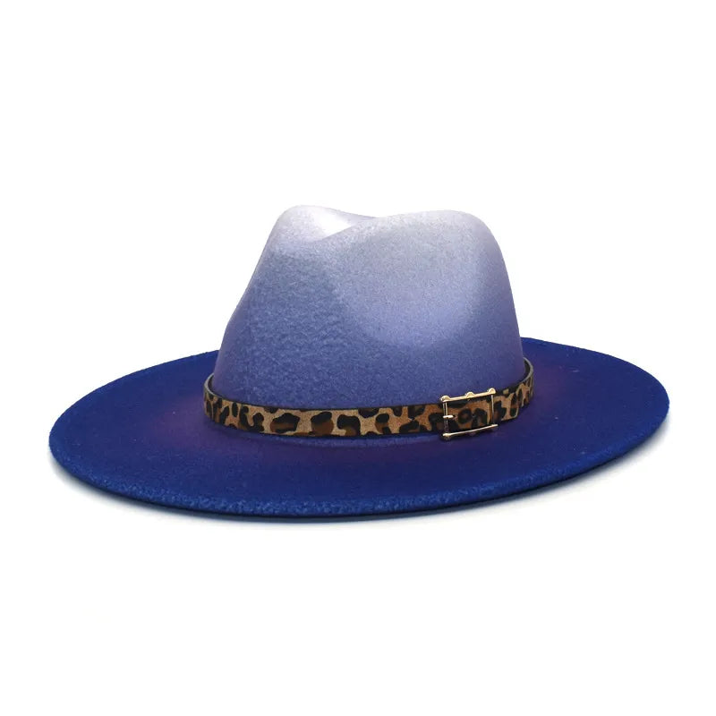 women's fashion gradient color metal button flat eaves fedora hat