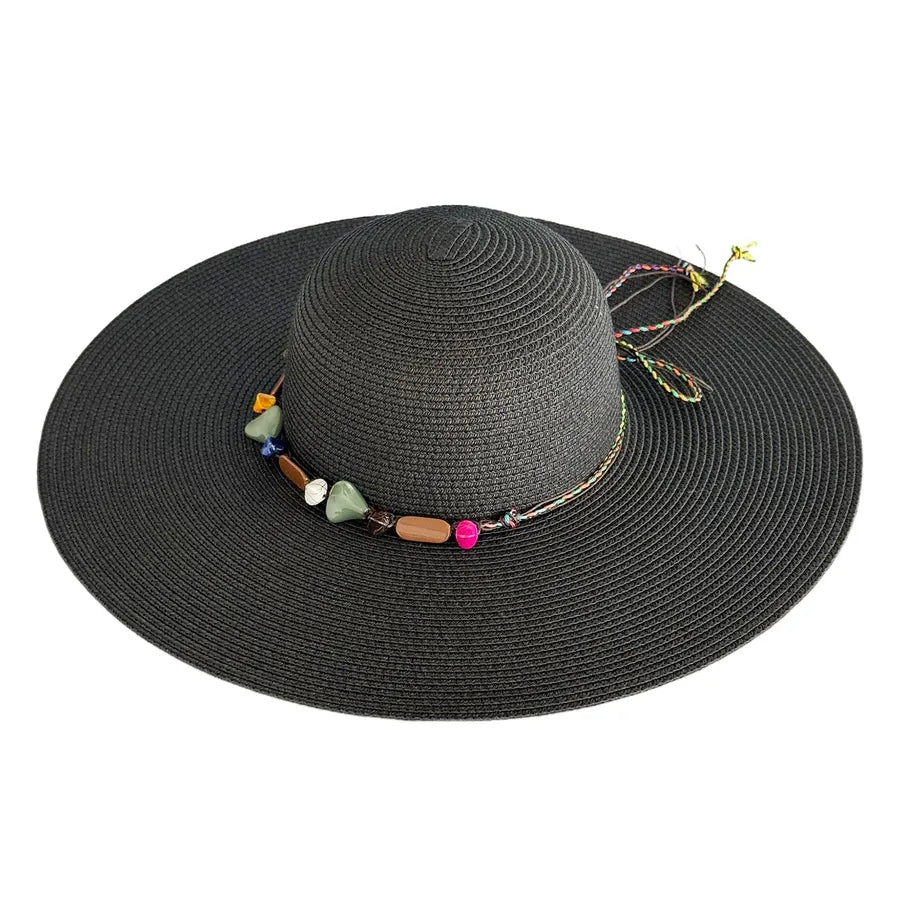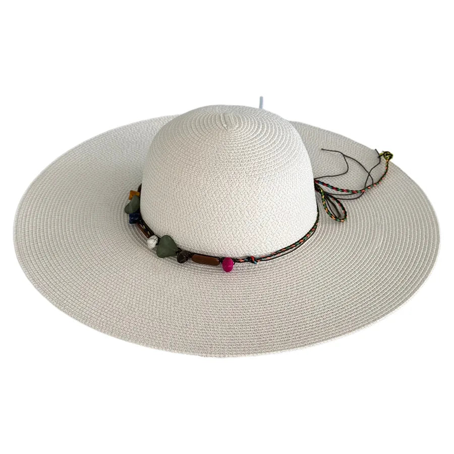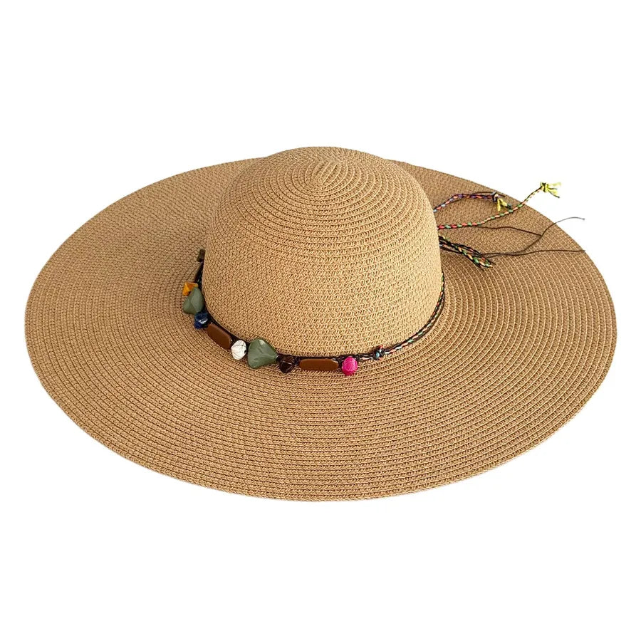 Women's Hawaiian Tropical Geometric Big Eaves Straw Hat