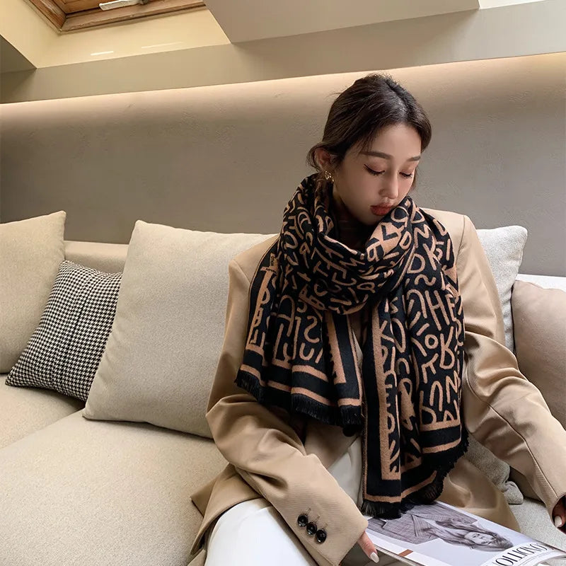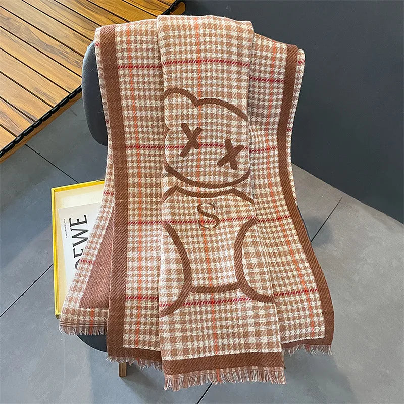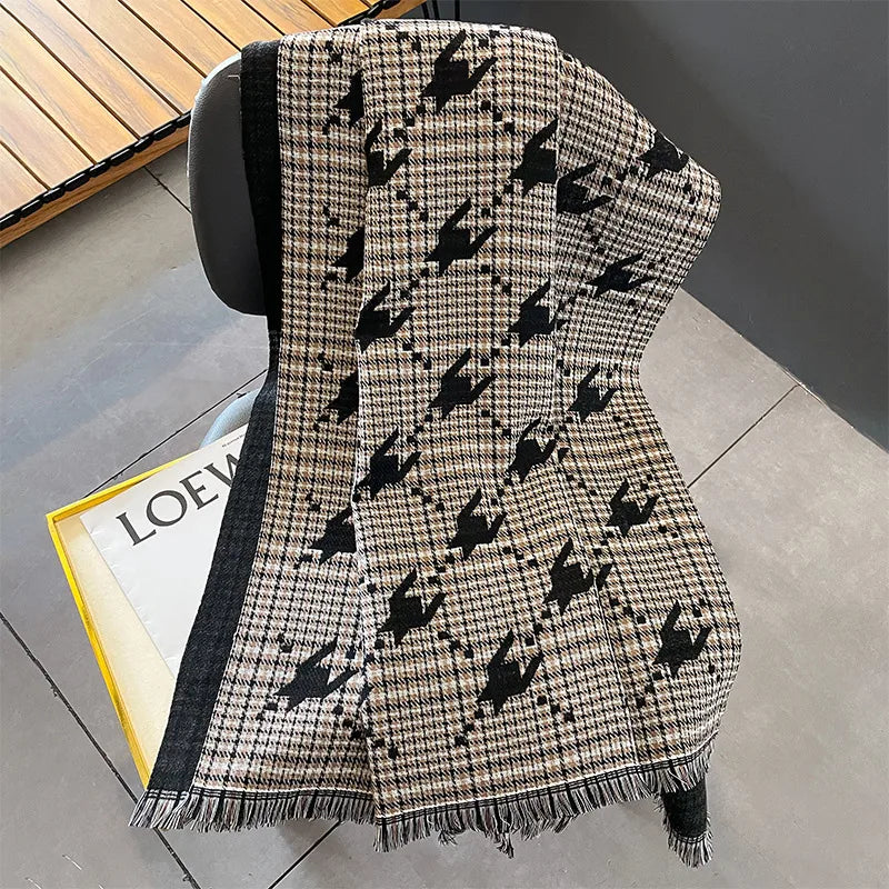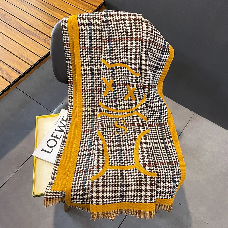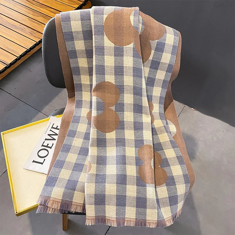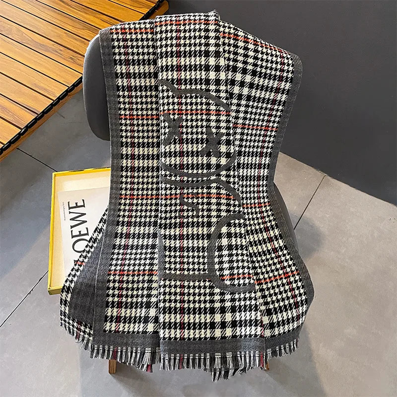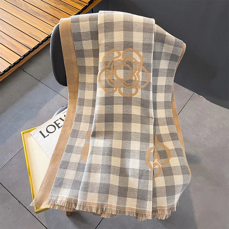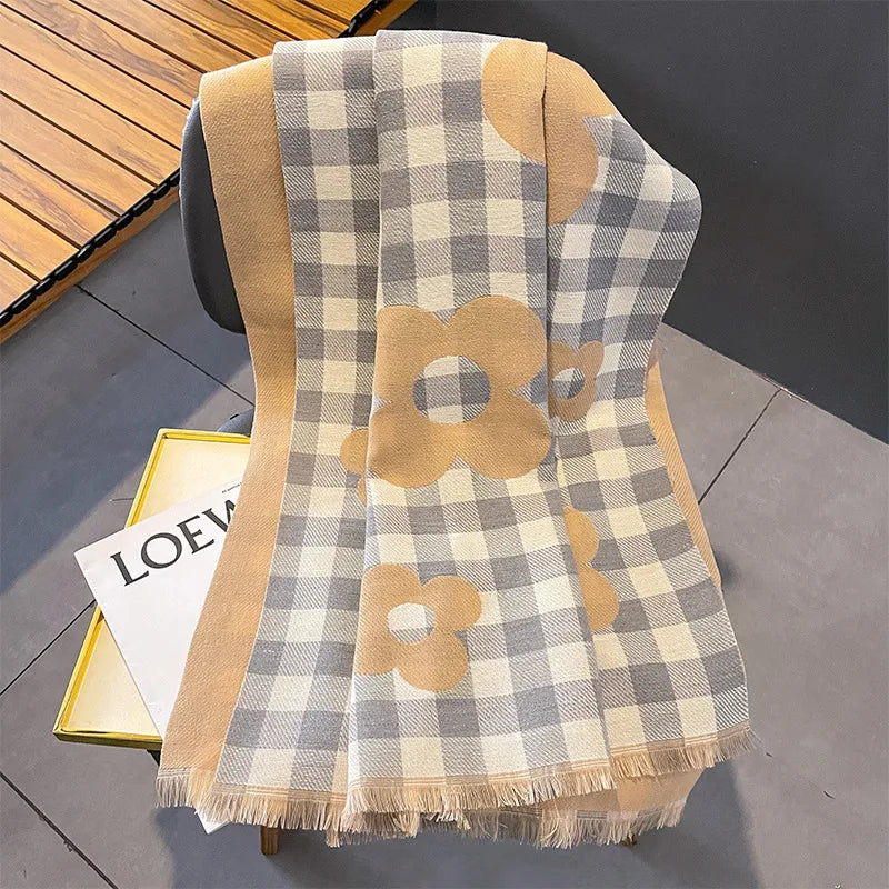 women's lady classic style plaid flower imitation cashmere scarf