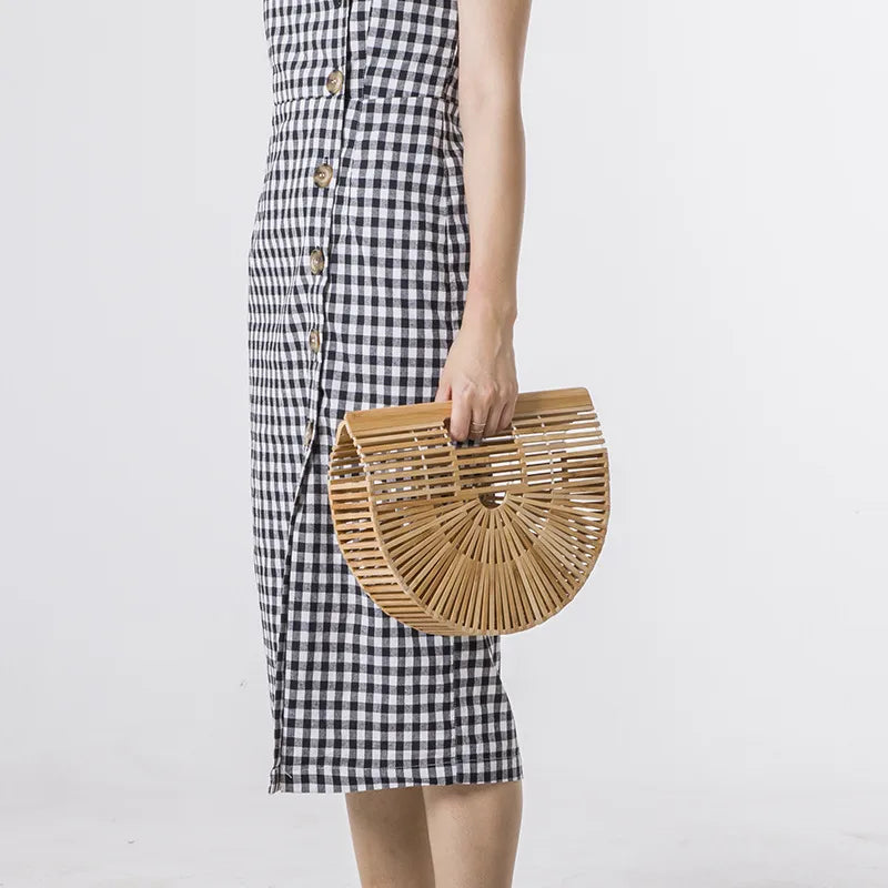 Women's Medium Bamboo Solid Color Vacation Beach Open beach bag
