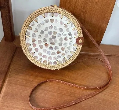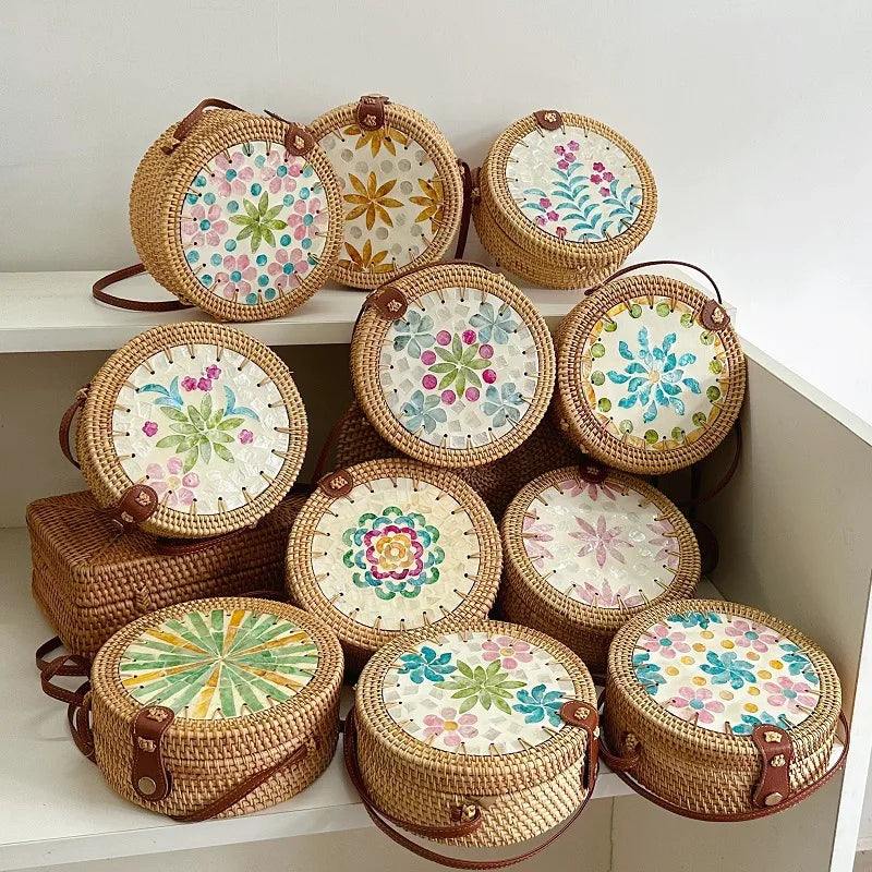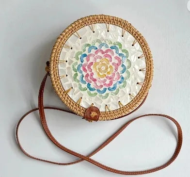 Women's Medium Rattan Floral Elegant Magnetic Buckle Dome Bag