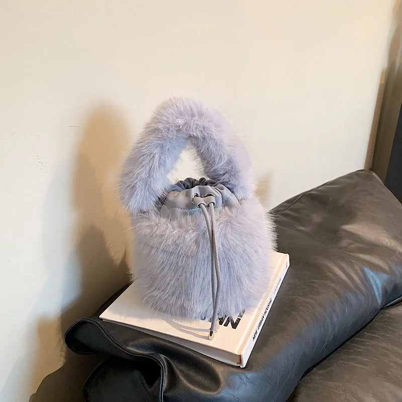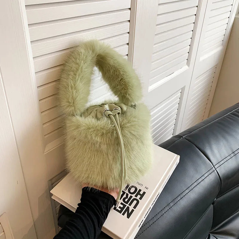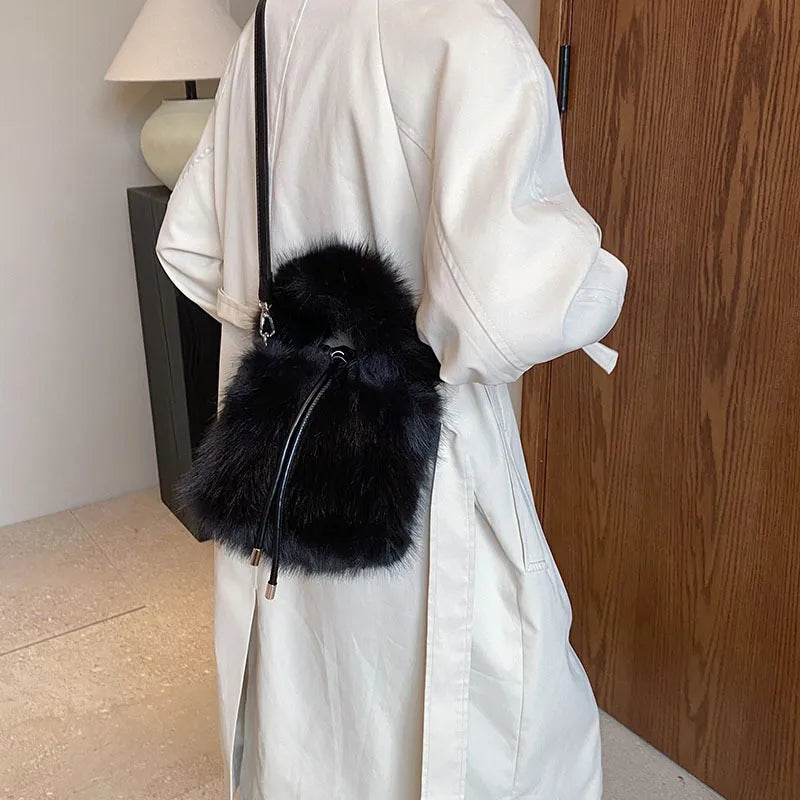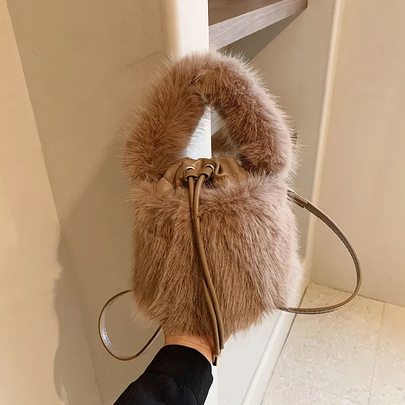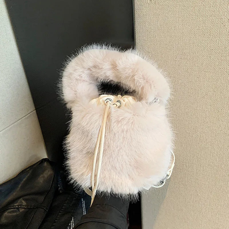 Women's Plush Solid Color Streetwear Bucket String Shoulder Bag Crossbody Bag Bucket Bag