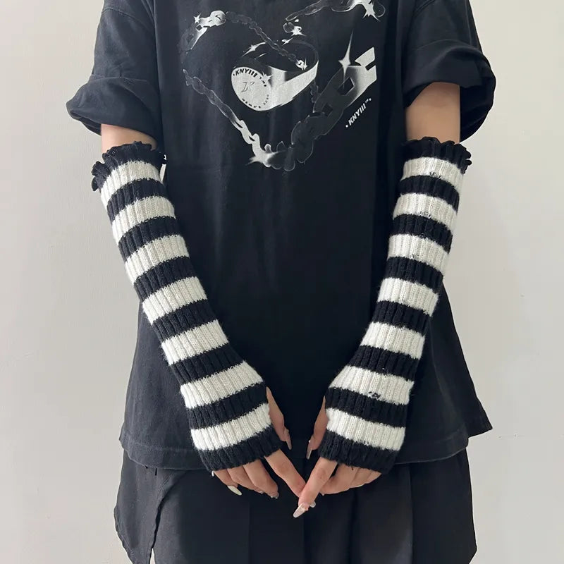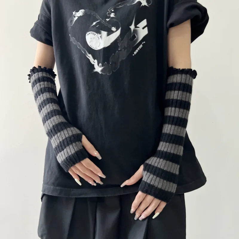 Women's Preppy Style Streetwear Sports Splicing Gloves Arm Sleeves