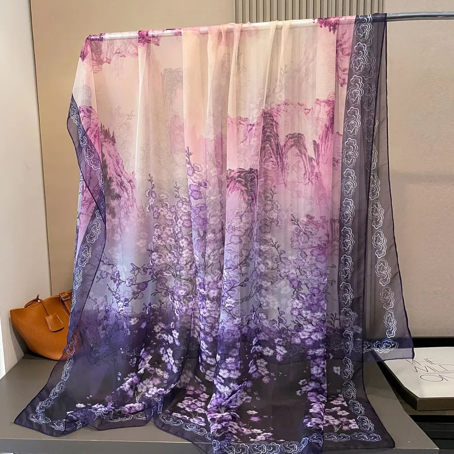 Women's Retro Flower Brocade Yarn Silk Scarf