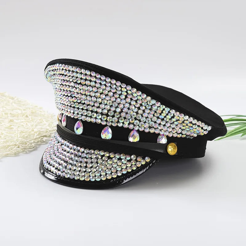 women's retro shiny solid color sequins rhinestone flat eaves ivy cap