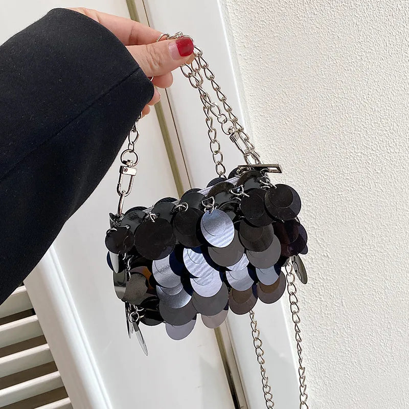 Women's Small PVC Solid Color Streetwear Weave Chain Square Zipper Shoulder Bag