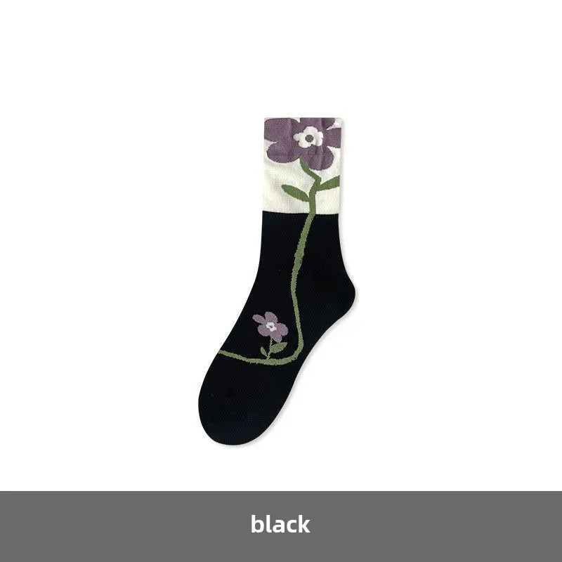 Women's socks autumn and winter New trendy socks tulip flower women's mid-calf socks Japanese three-dimensional women's socks Zhuji