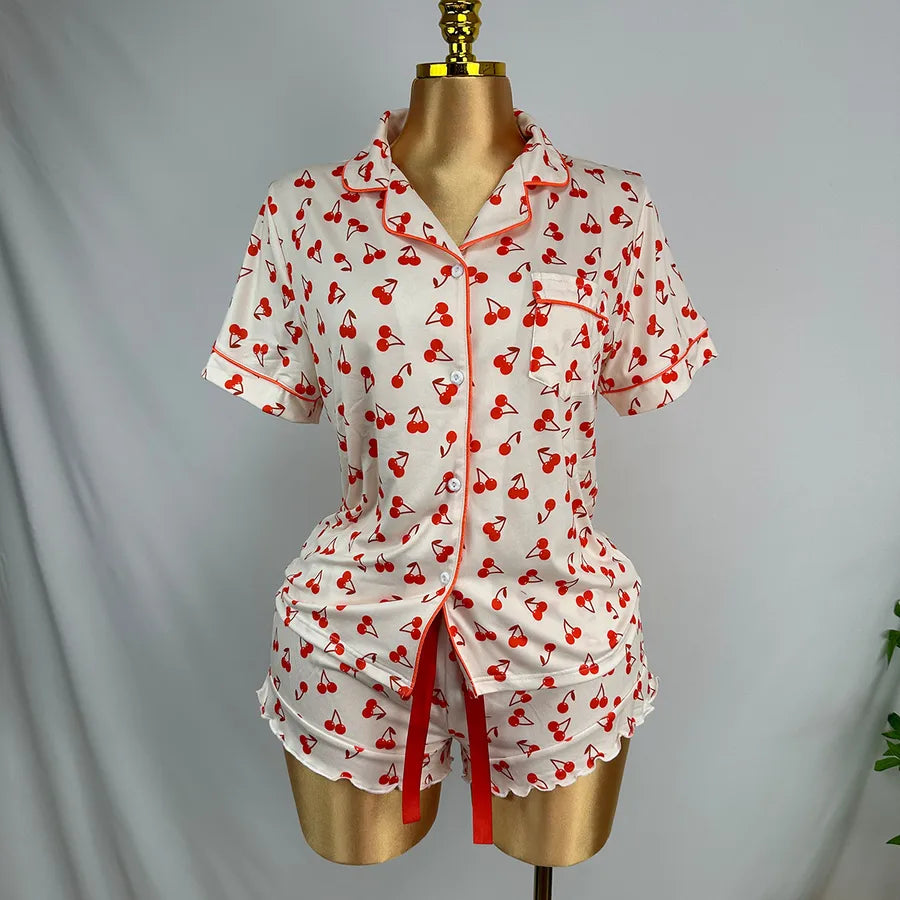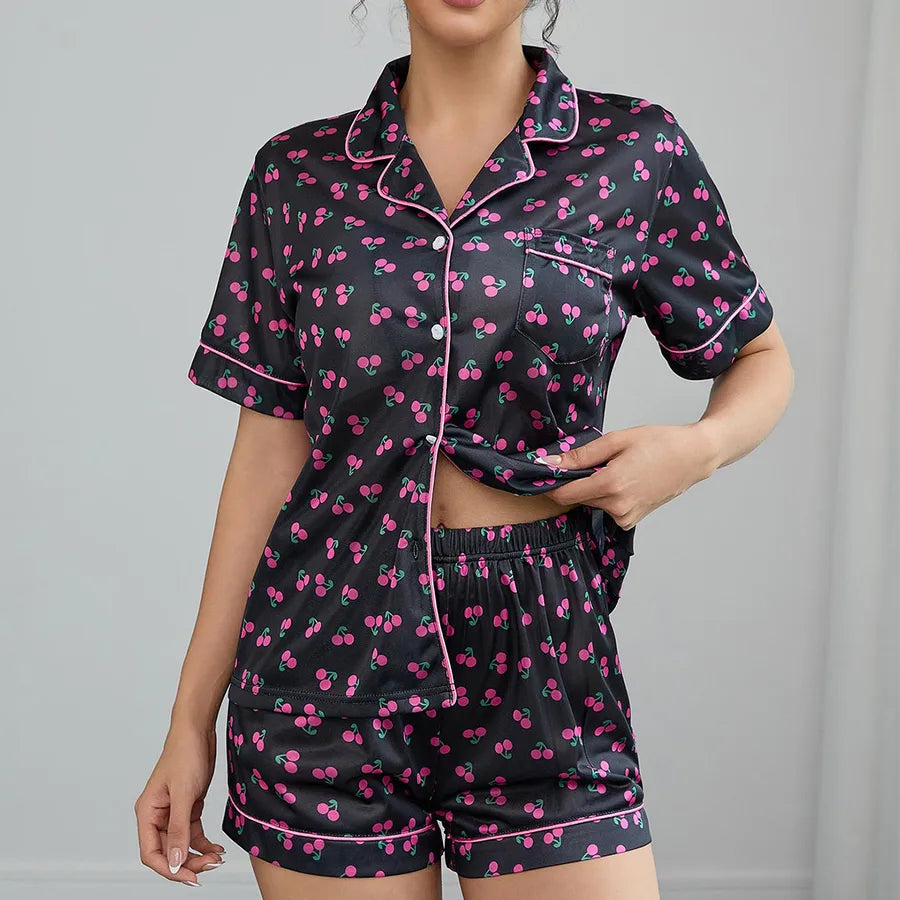 Women's Summer Sleepwear Short Sleeve Turn-down Collar Shorts Two-piece Set Casual Breathable Home Clothes European Style