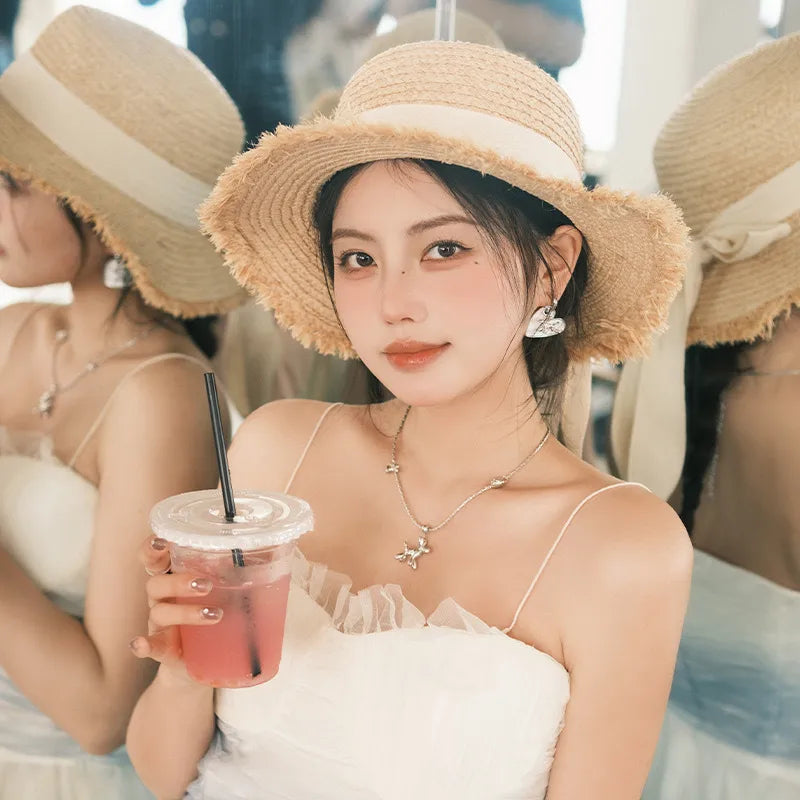 Women's Sweet Simple Style Solid Color Flat Eaves Straw Hat