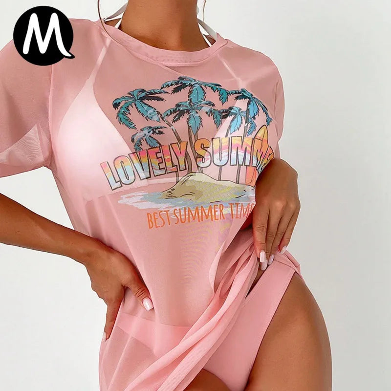 Women's Vacation Letter Coconut Tree 3 Pieces Set Bikinis Swimwear