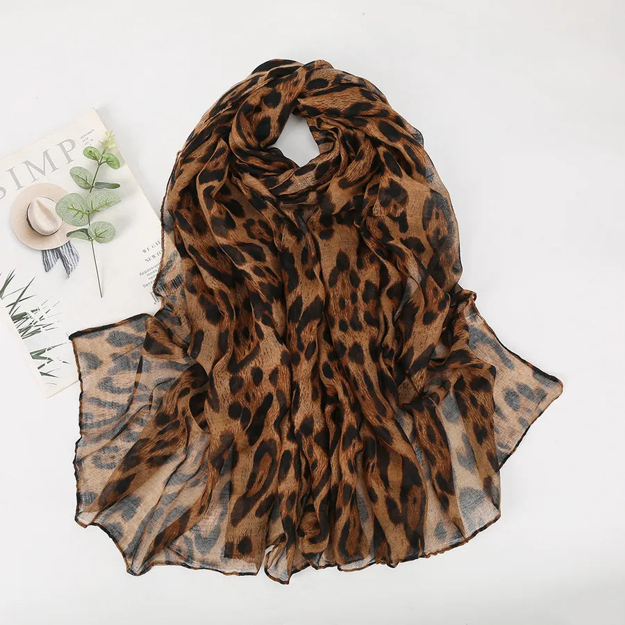 Women's Vintage Style Classic Style Leopard Polyester Printing Silk Scarf