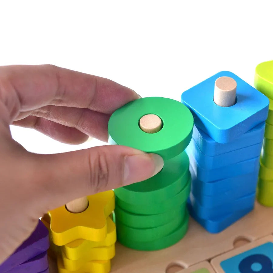 Wooden Educational Puzzle Blocks For Toddlers 1-3 Years Old Boys And Girls Shape Color Recognition Building Toys